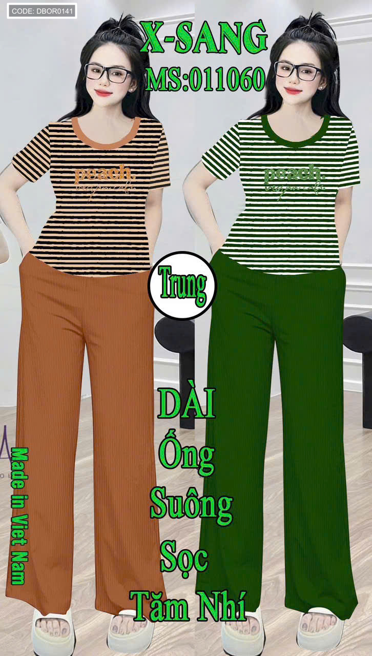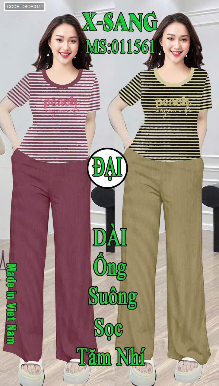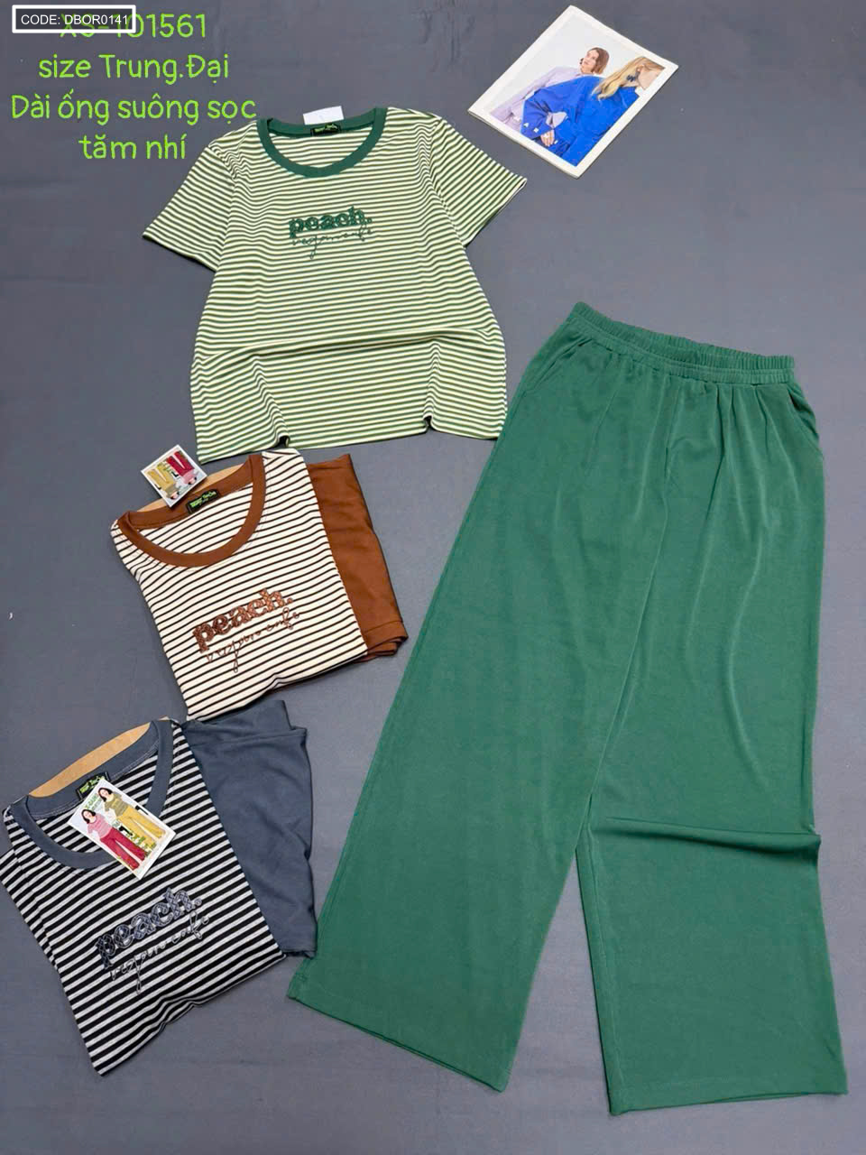 Đồ bộ nữ tay ngắn quần dài ống suông sọc tăm nhí XS-101561
