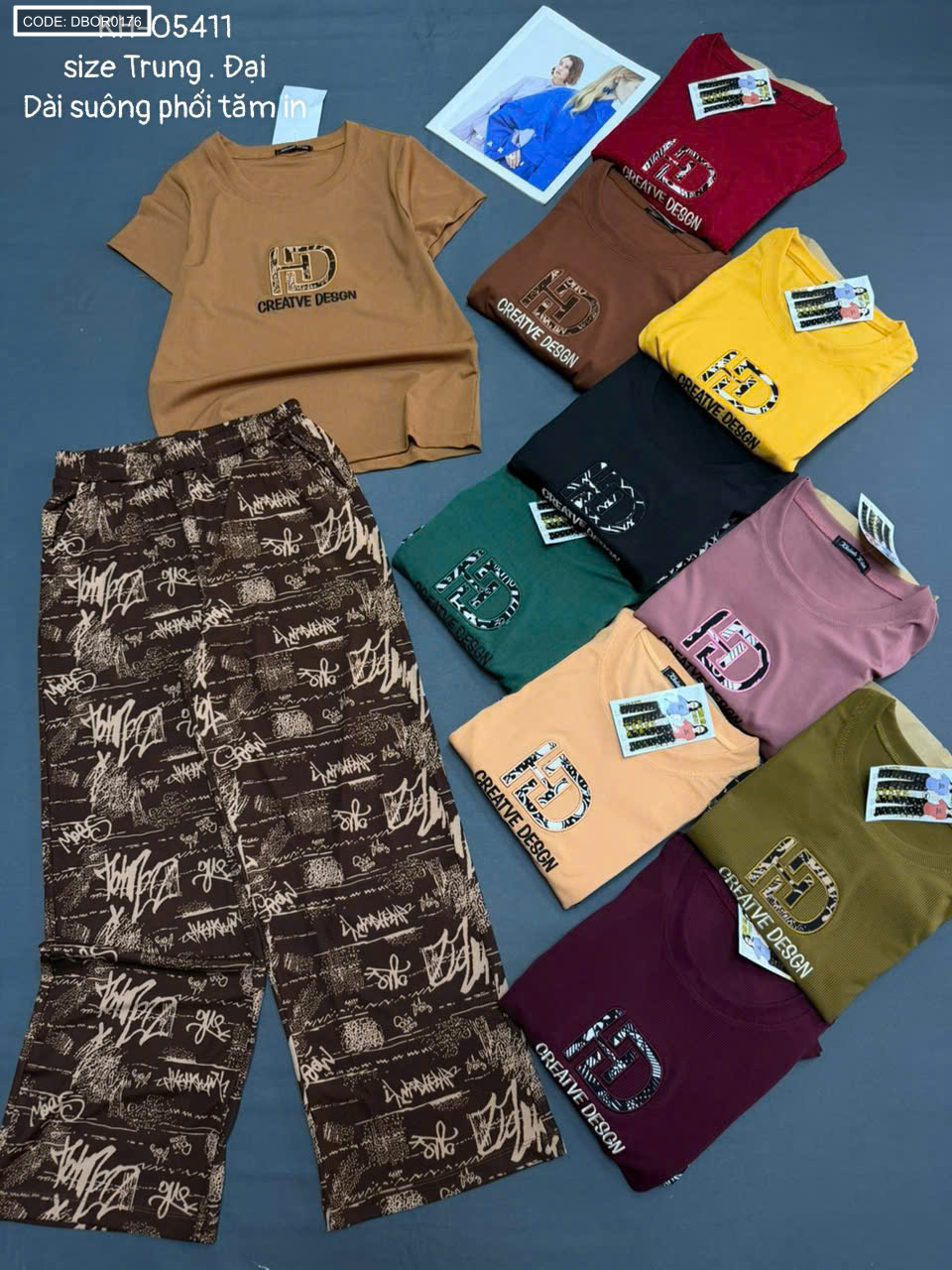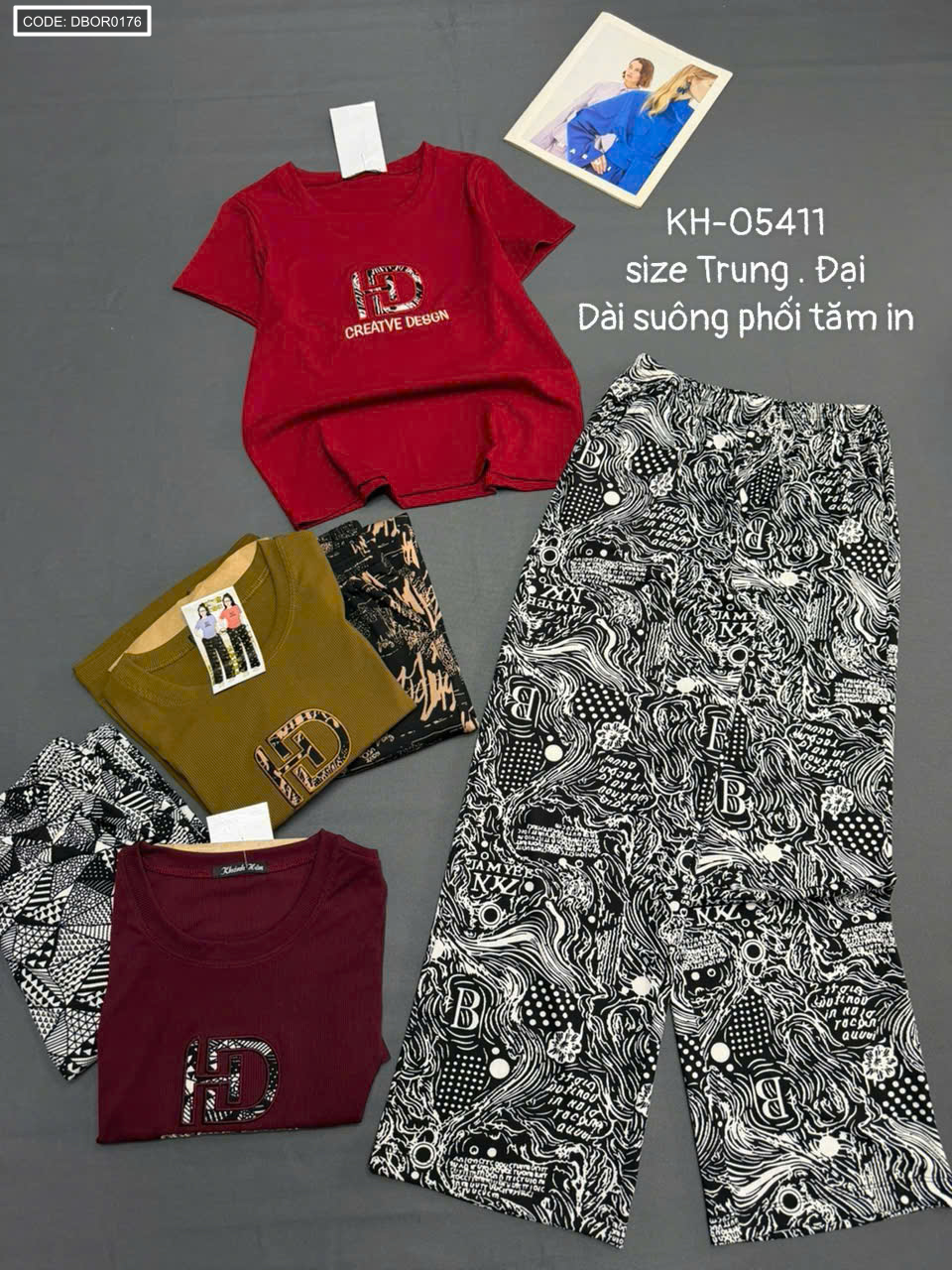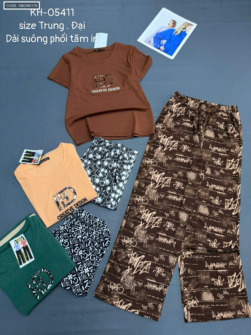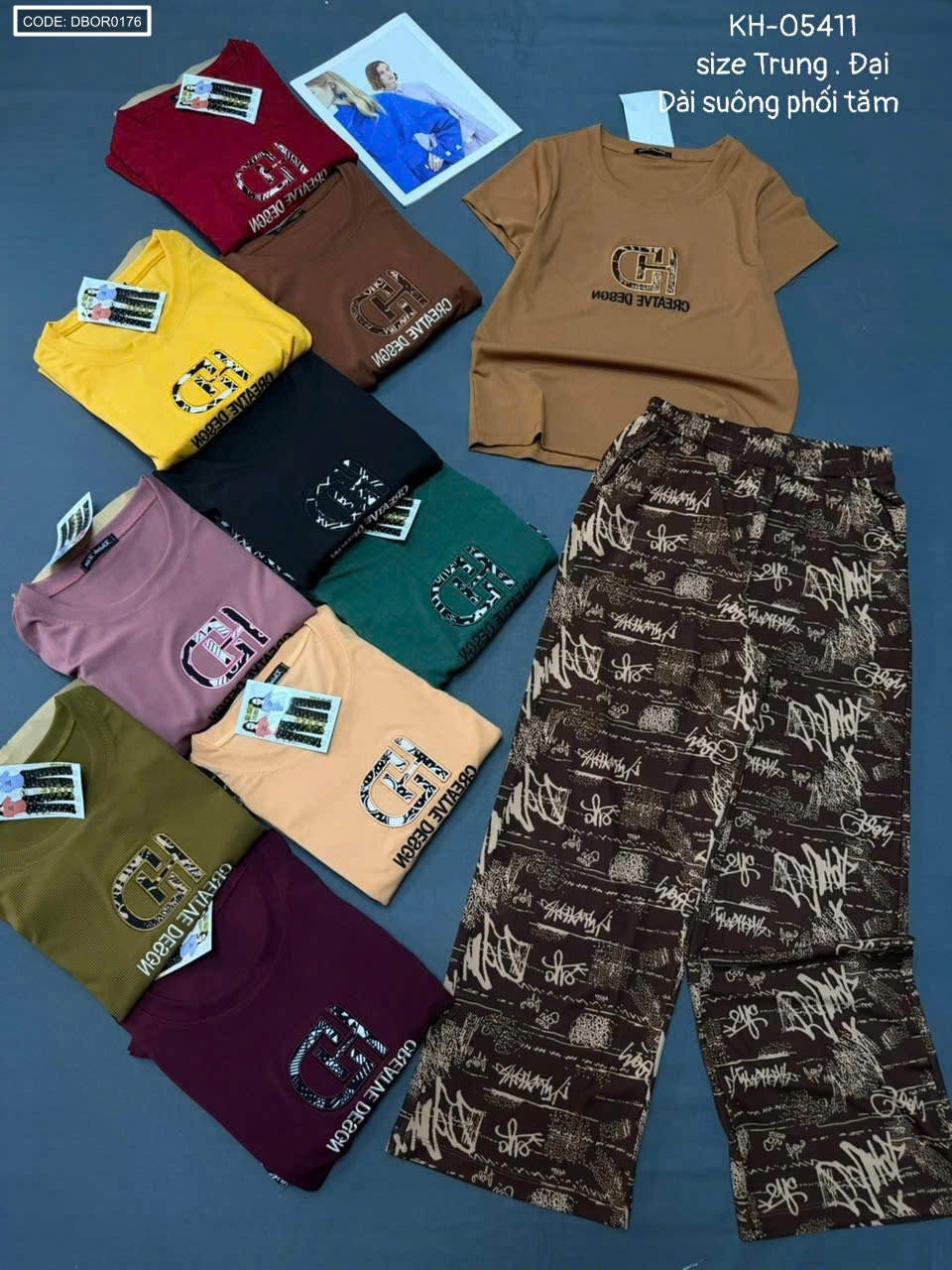 Đồ bộ nữ tay ngắn quần dài suông KH-05411