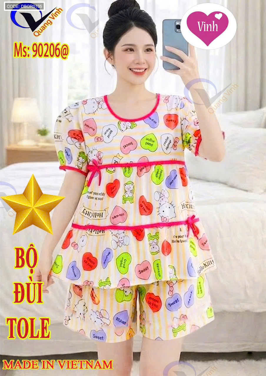 Đồ bộ nữ tay ngắn quần đùi vải tole QV-90206