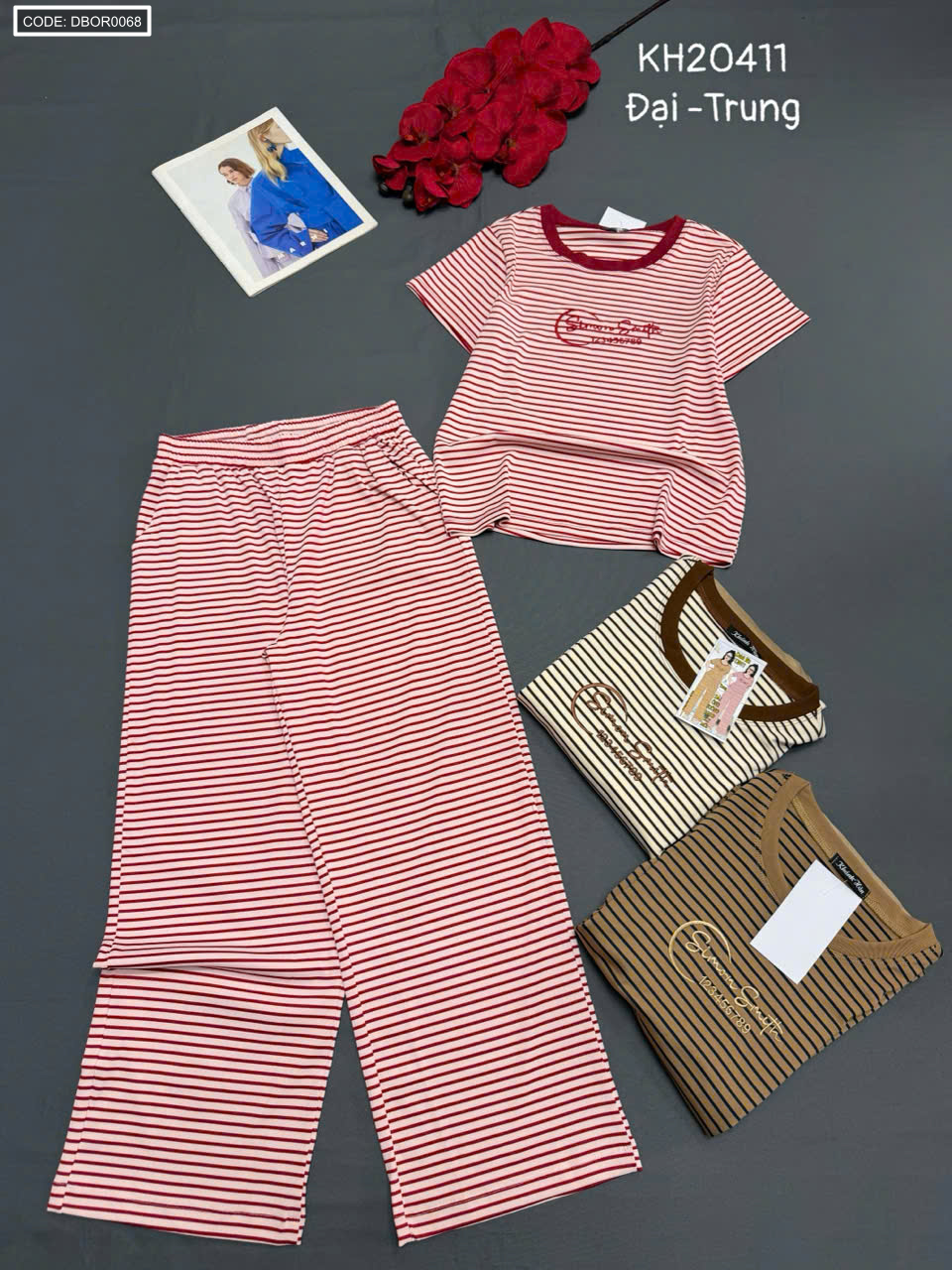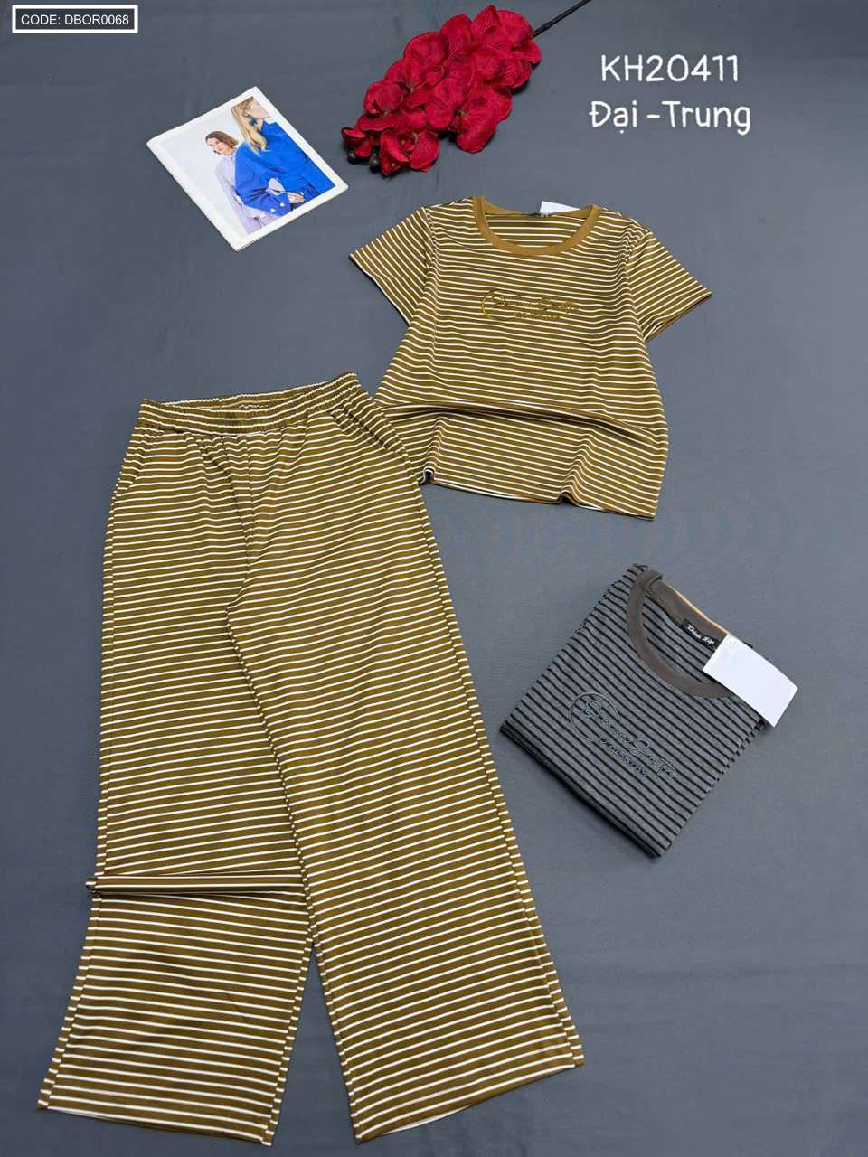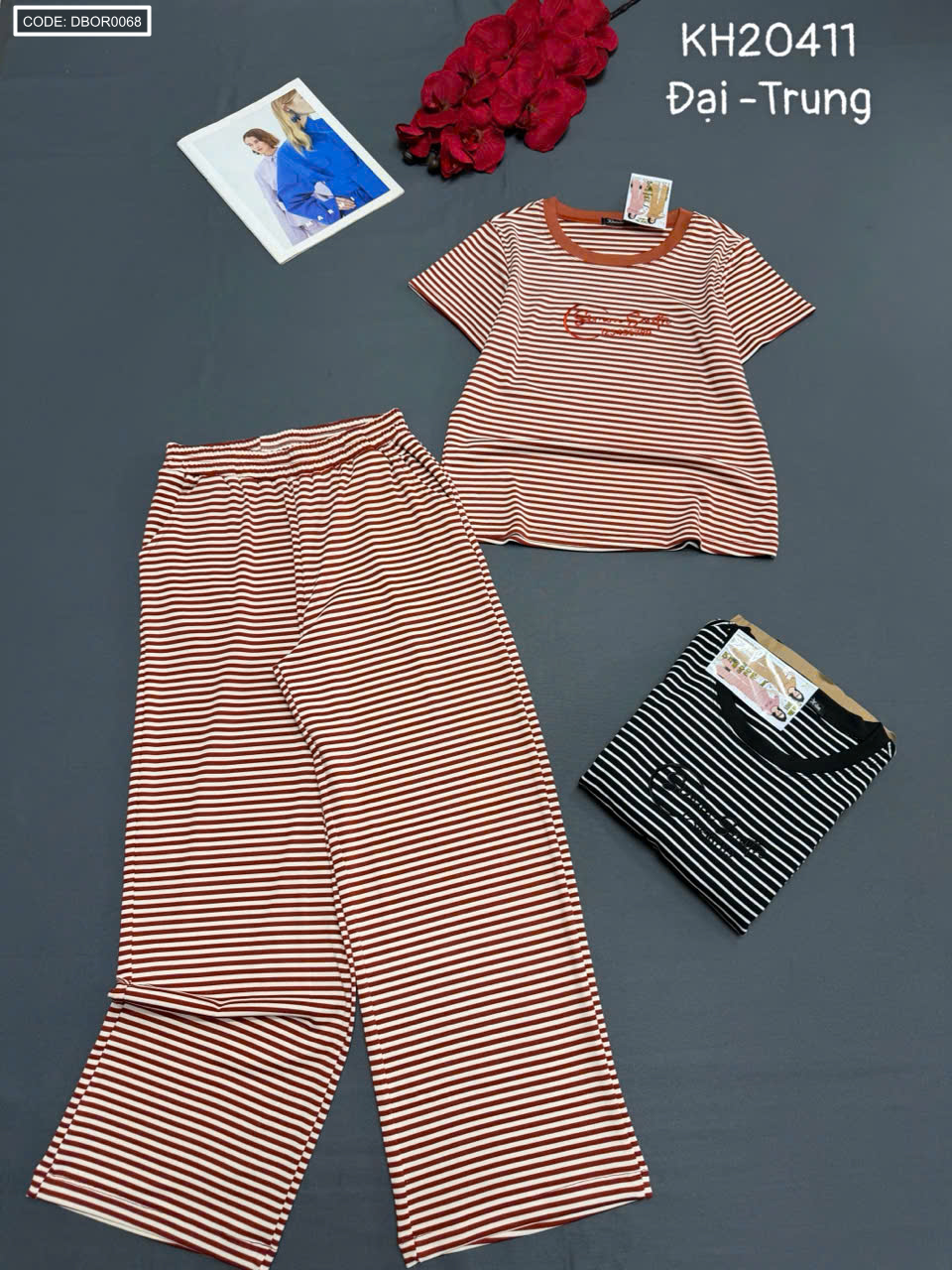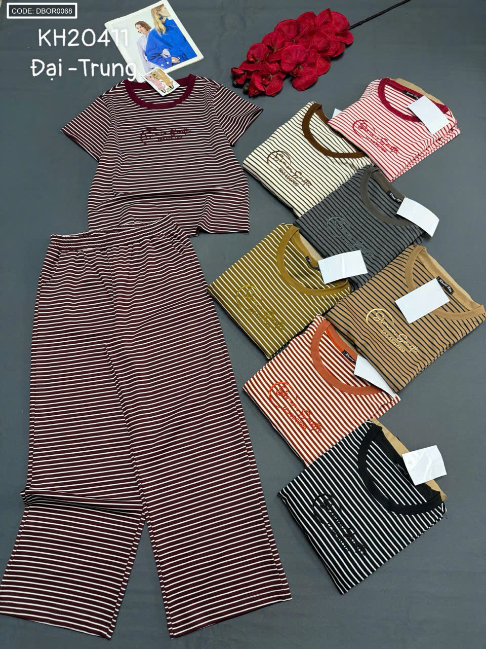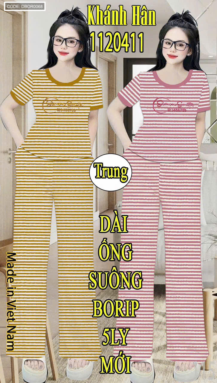 Đồ bộ nữ tay ngắn quần ống suông sọc
