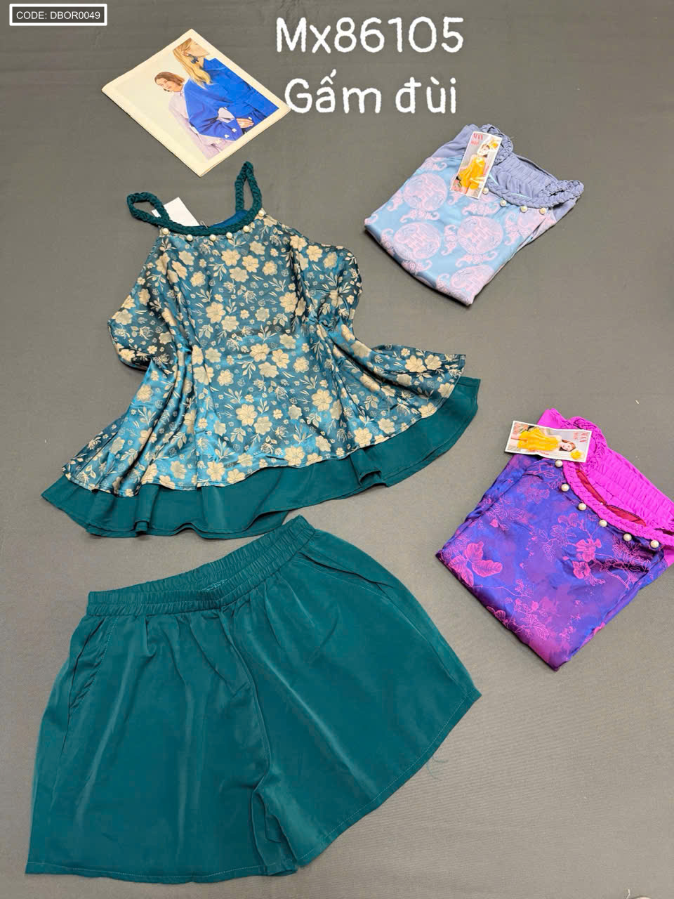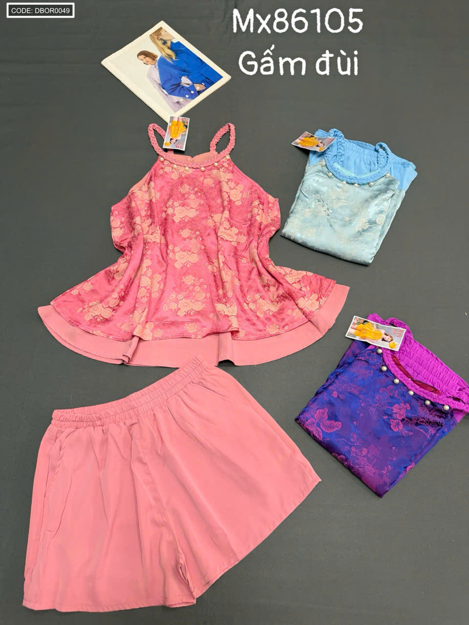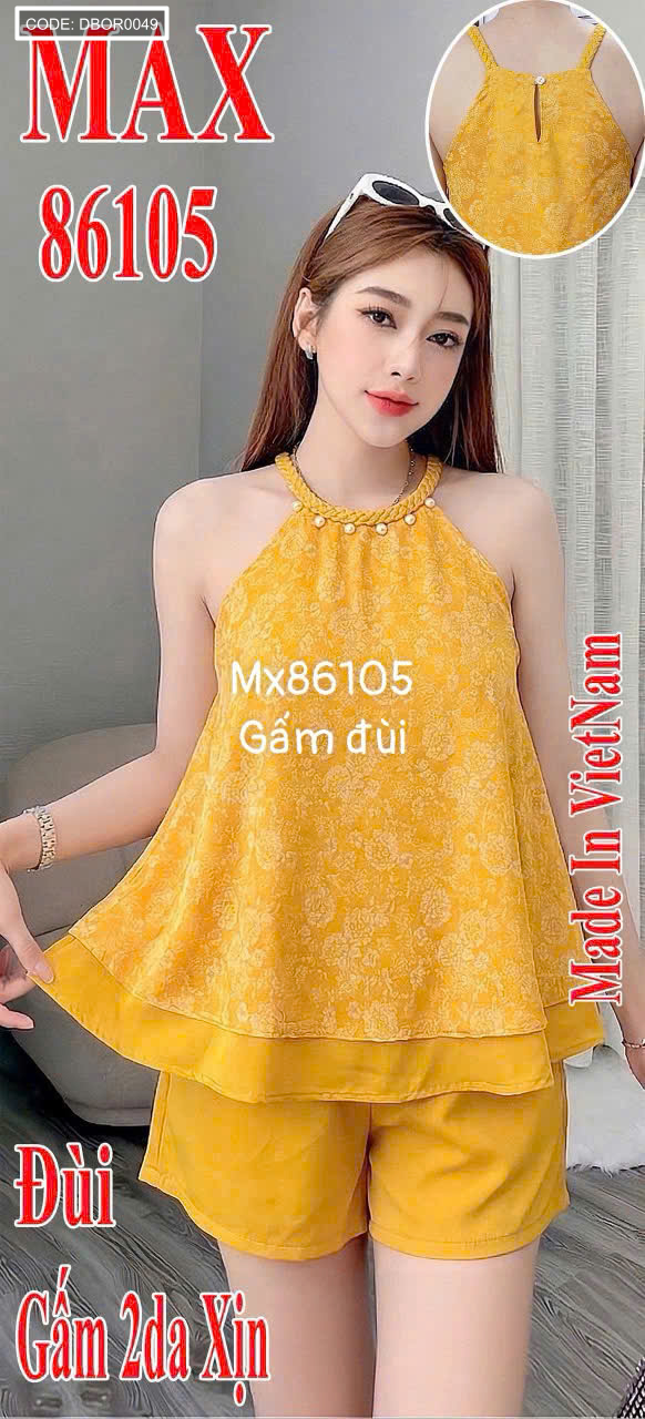 Giá sỉ đồ bộ nữ sát nách cổ yếm vải gấm quần đùi Mx86105