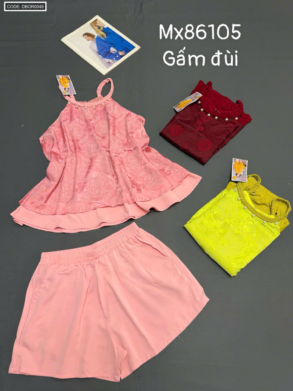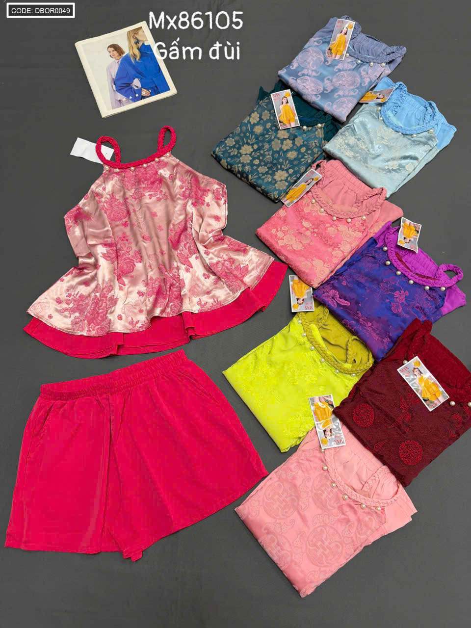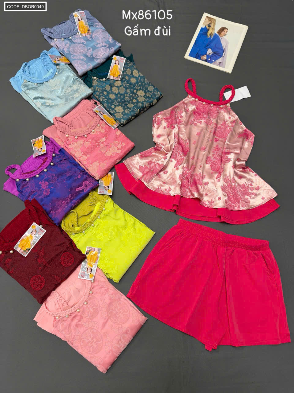 Giá sỉ đồ bộ nữ sát nách cổ yếm vải gấm quần đùi Mx86105
