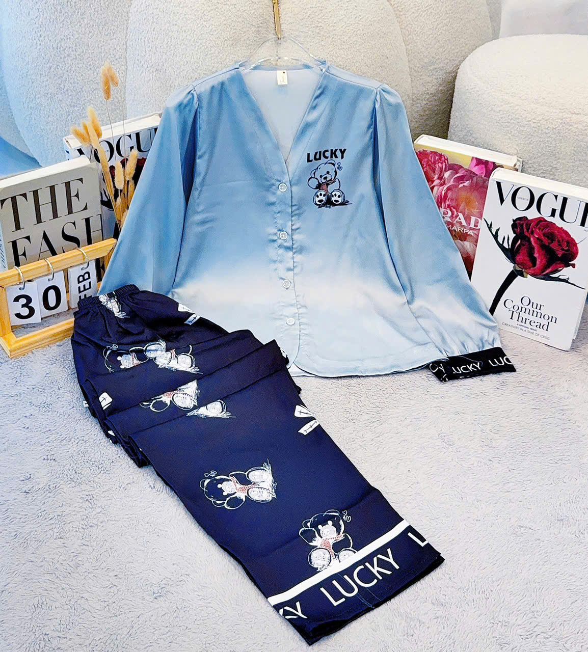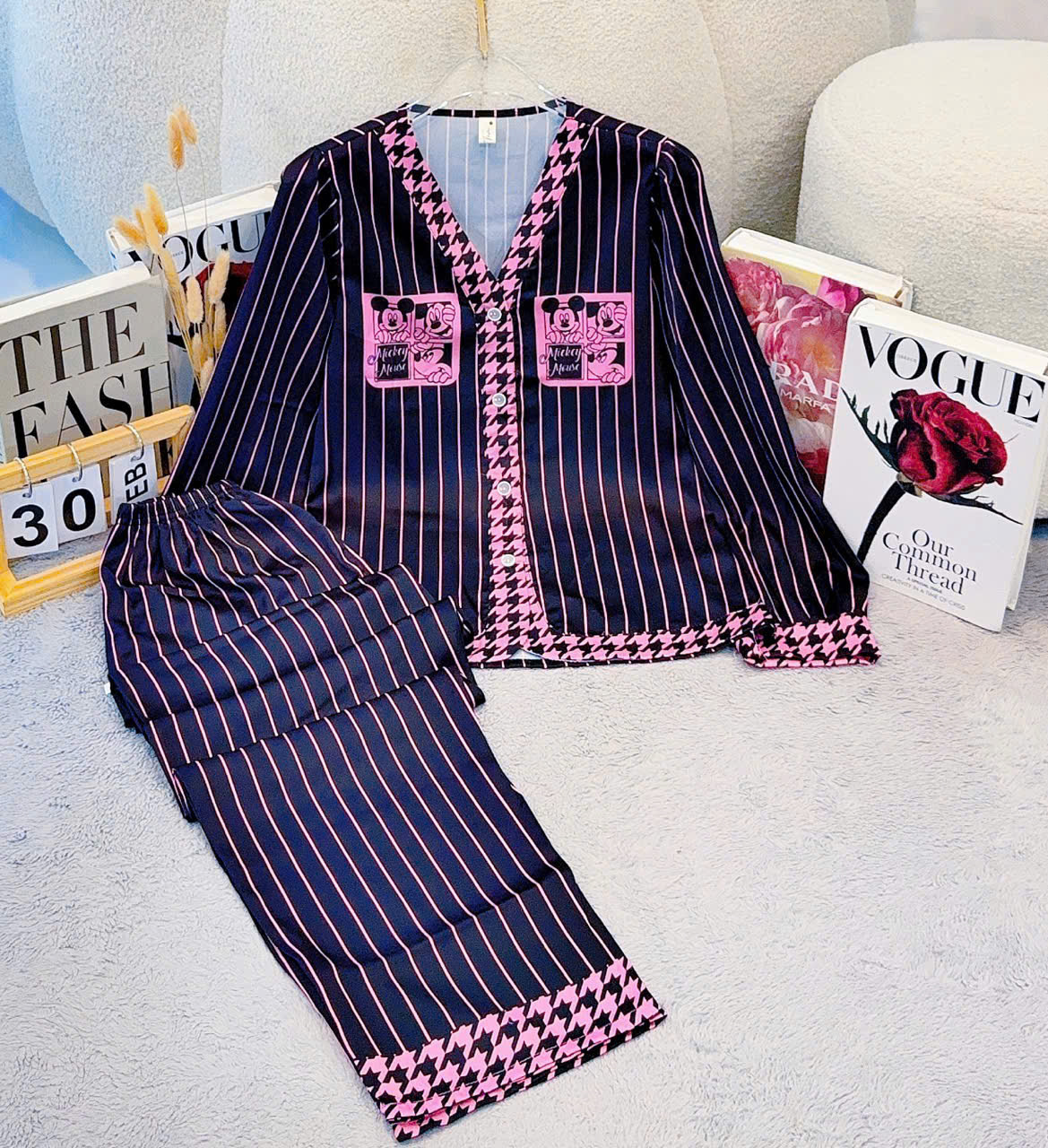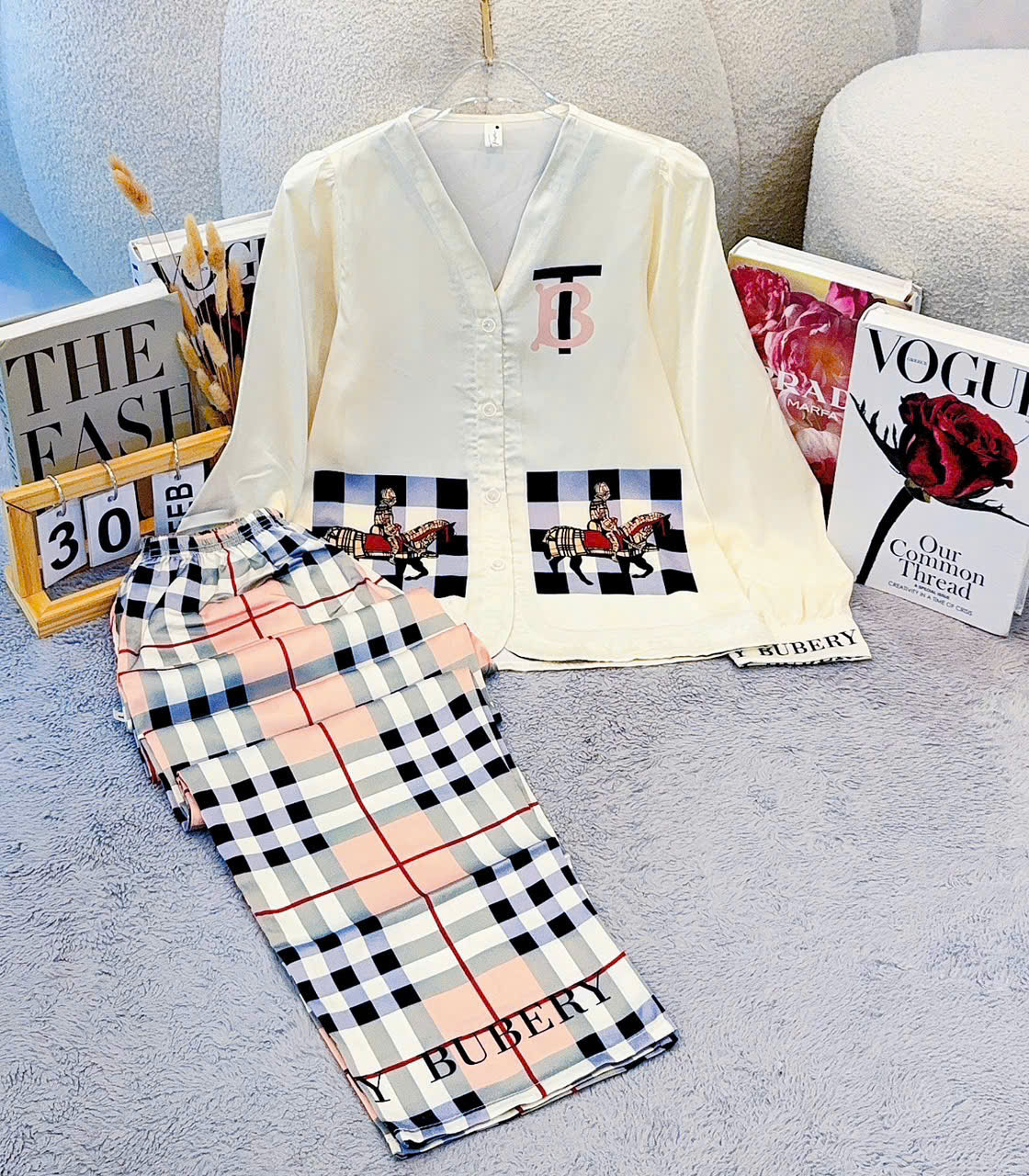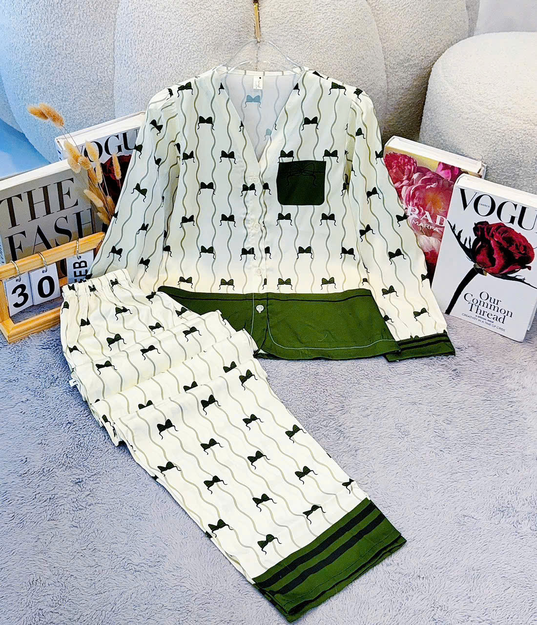 Giá sỉ đồ Bộ Nữ Tay Dài Quần Dài Cổ Chữ Y Tay Phồng 25-118