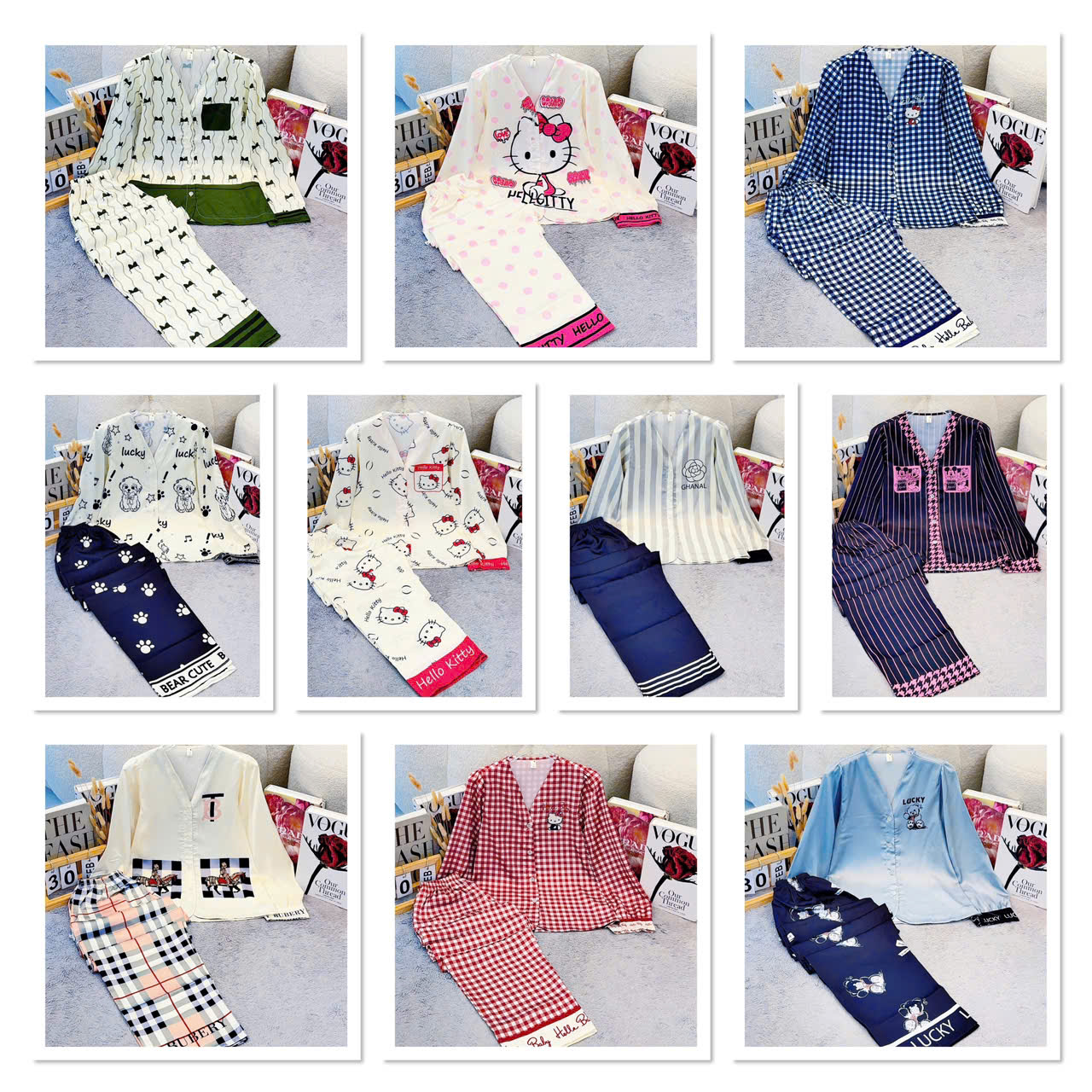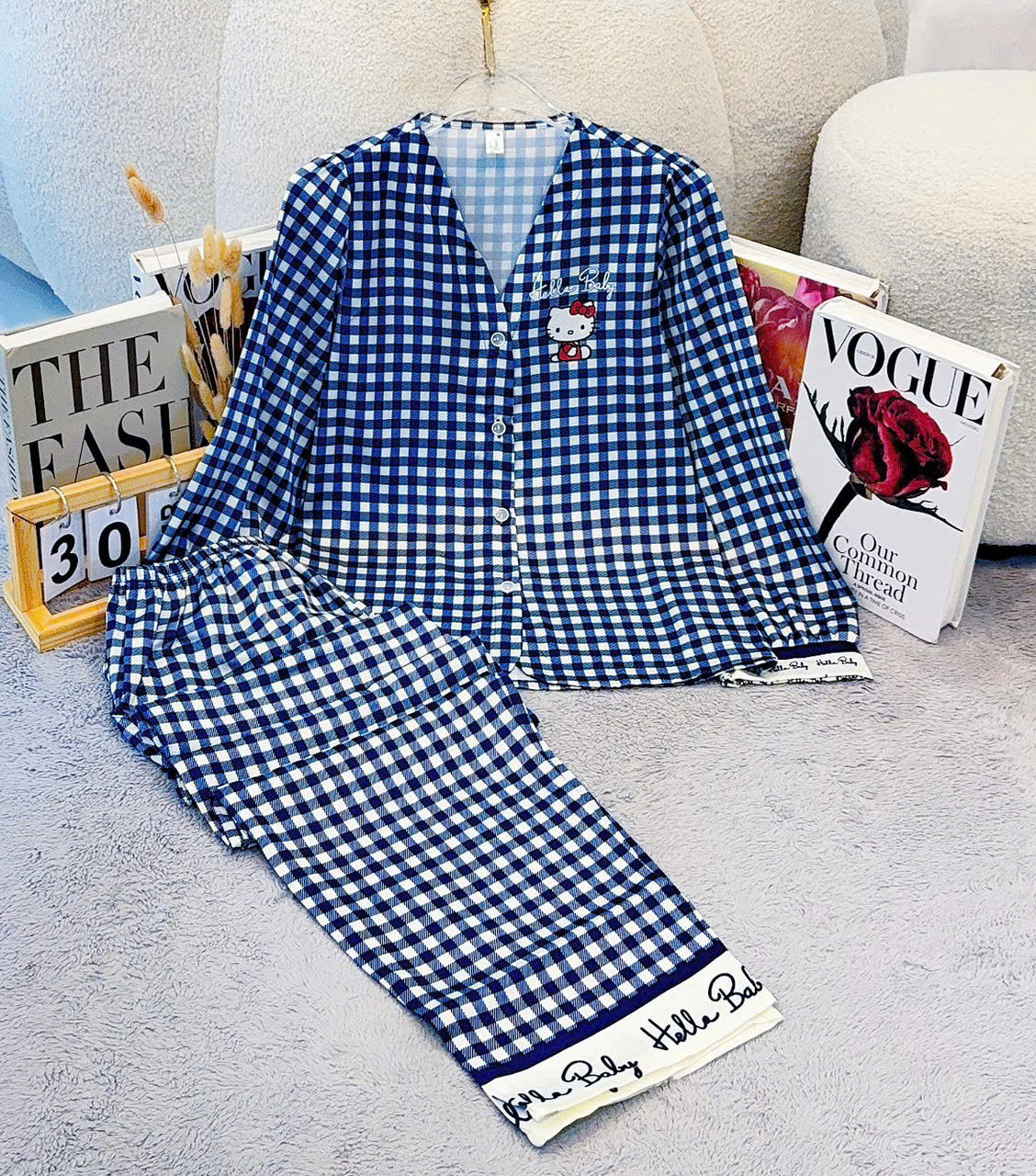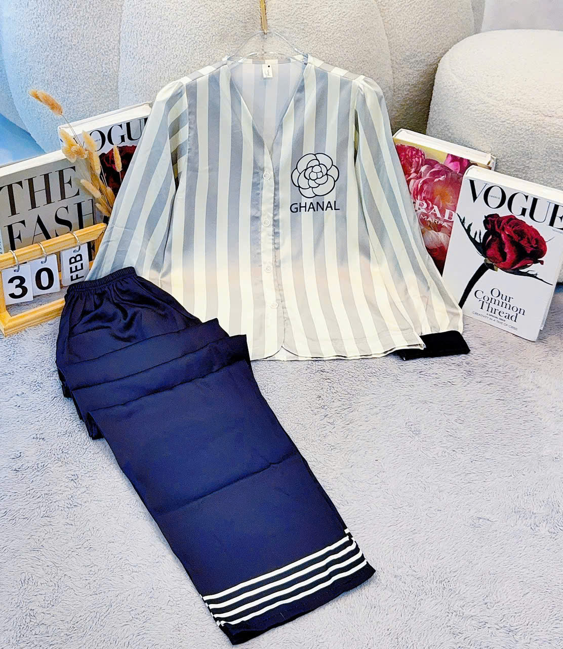 Giá sỉ đồ Bộ Nữ Tay Dài Quần Dài Cổ Chữ Y Tay Phồng 25-118