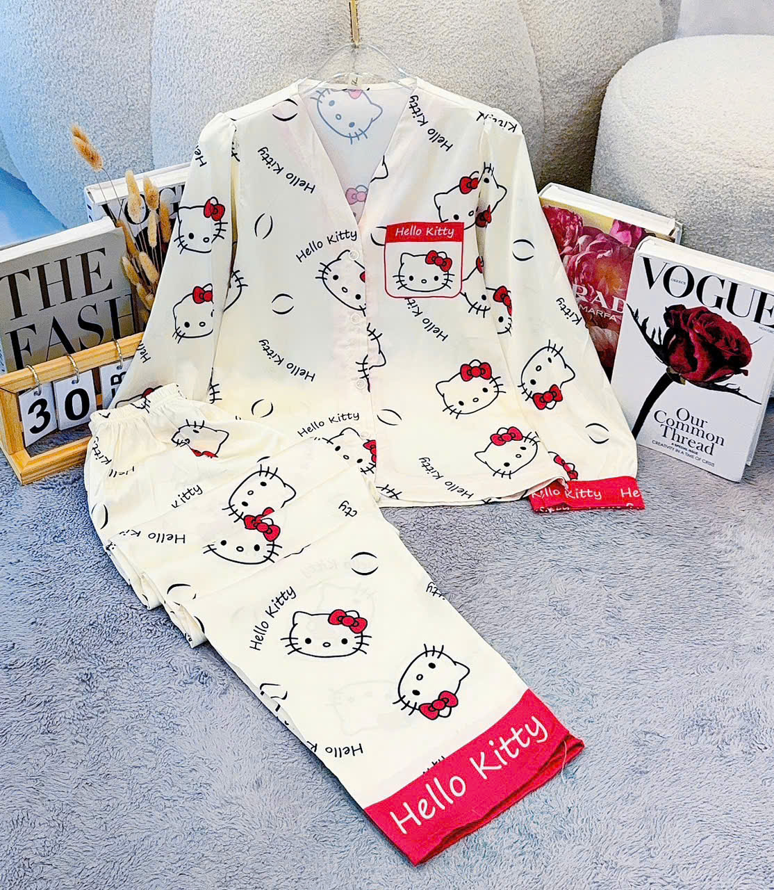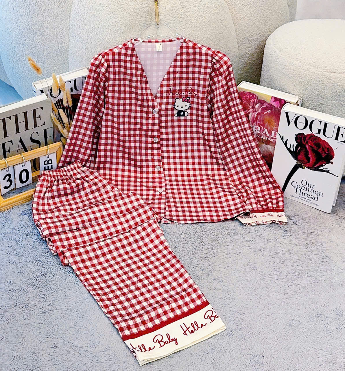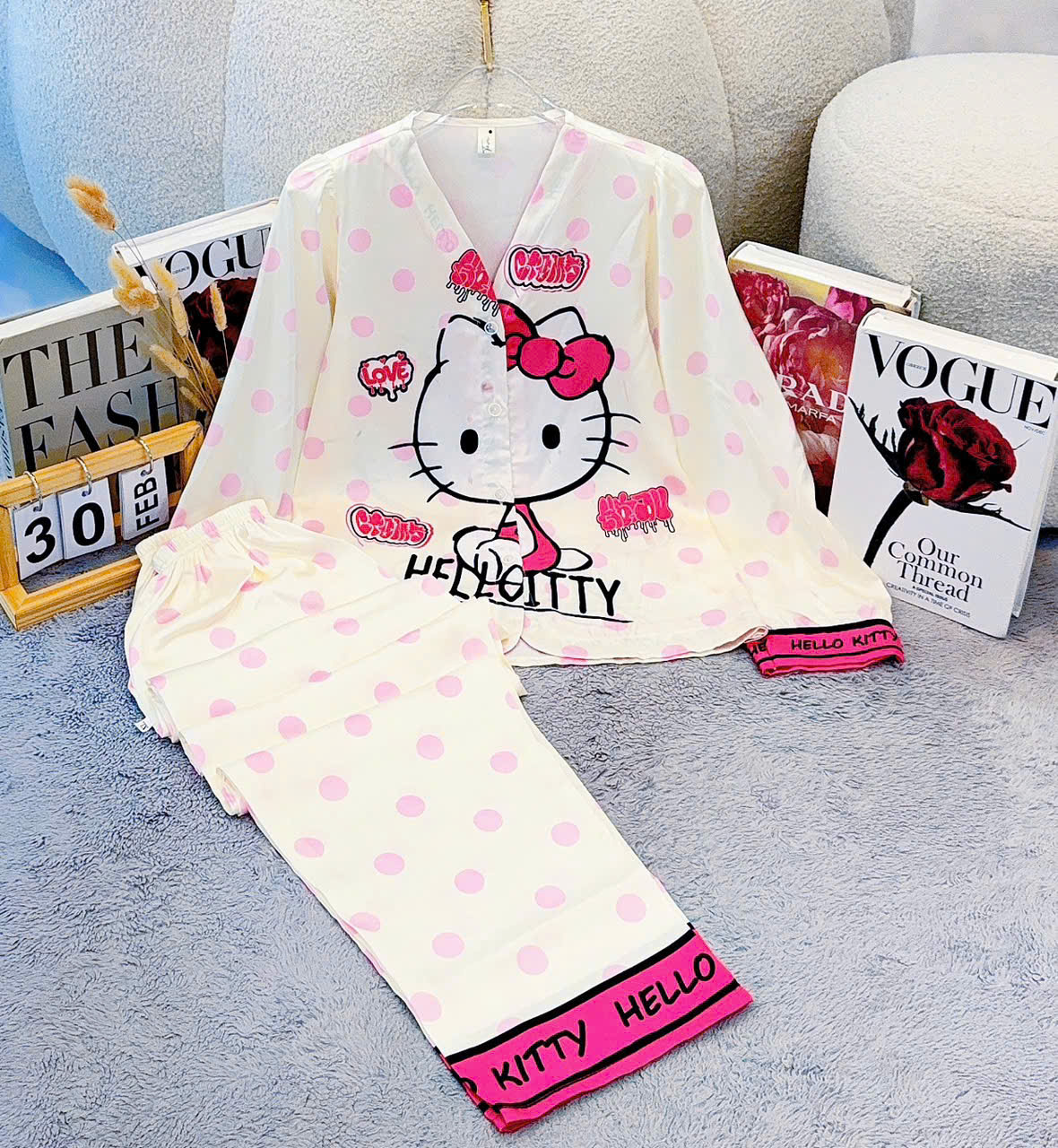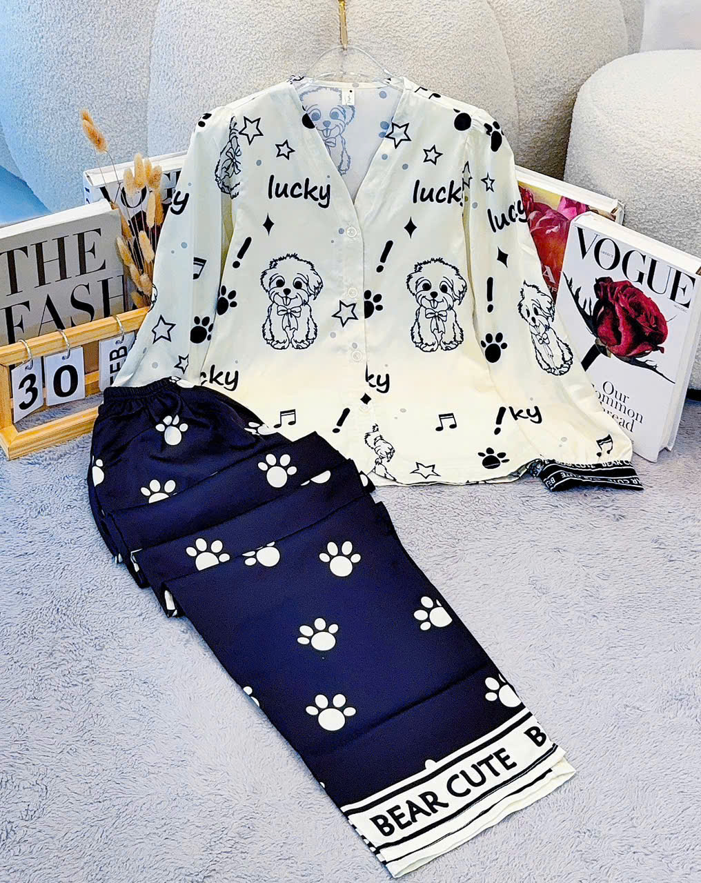 Giá sỉ đồ Bộ Nữ Tay Dài Quần Dài Cổ Chữ Y Tay Phồng 25-118