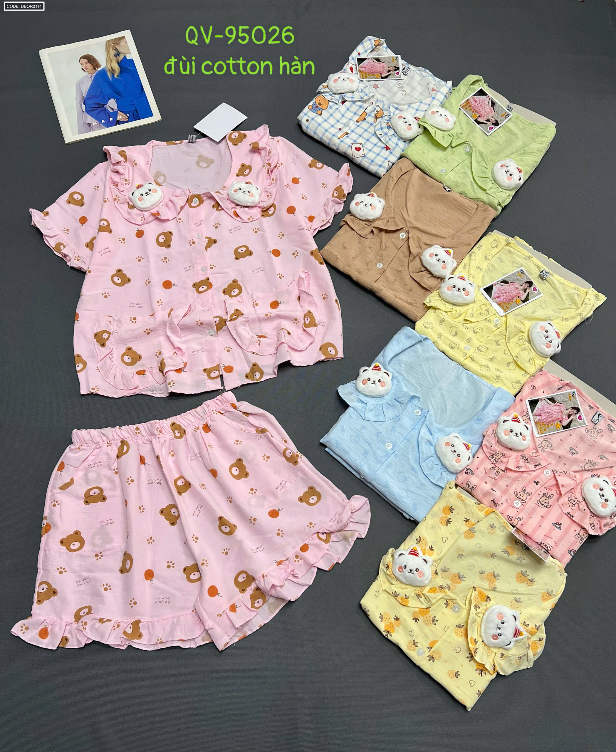 Giá sỉ đồ bộ nữ tay ngắn quần đùi chất cotton hàng không co giãn QV-95026