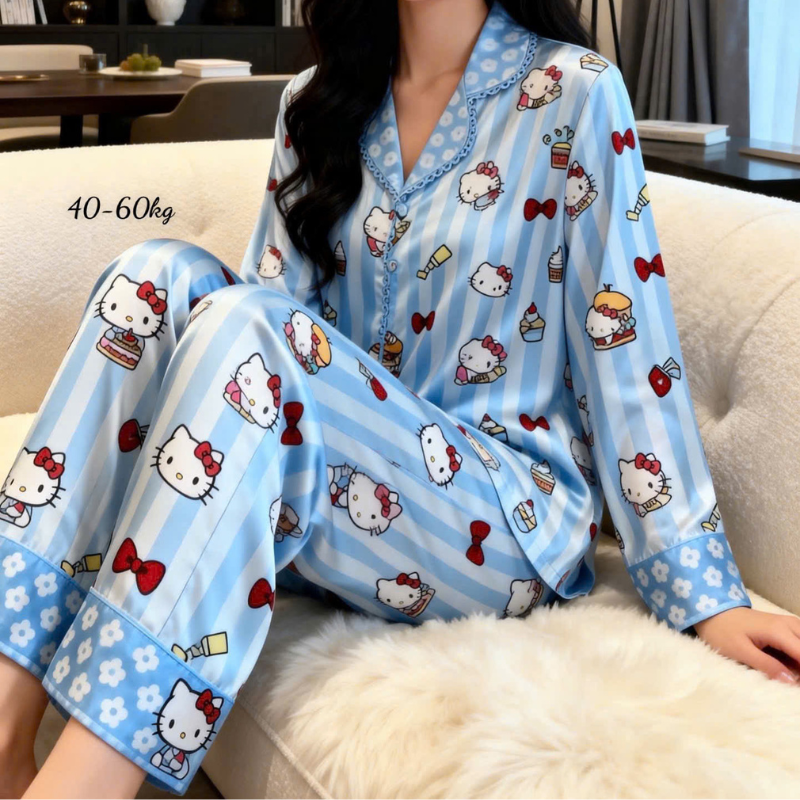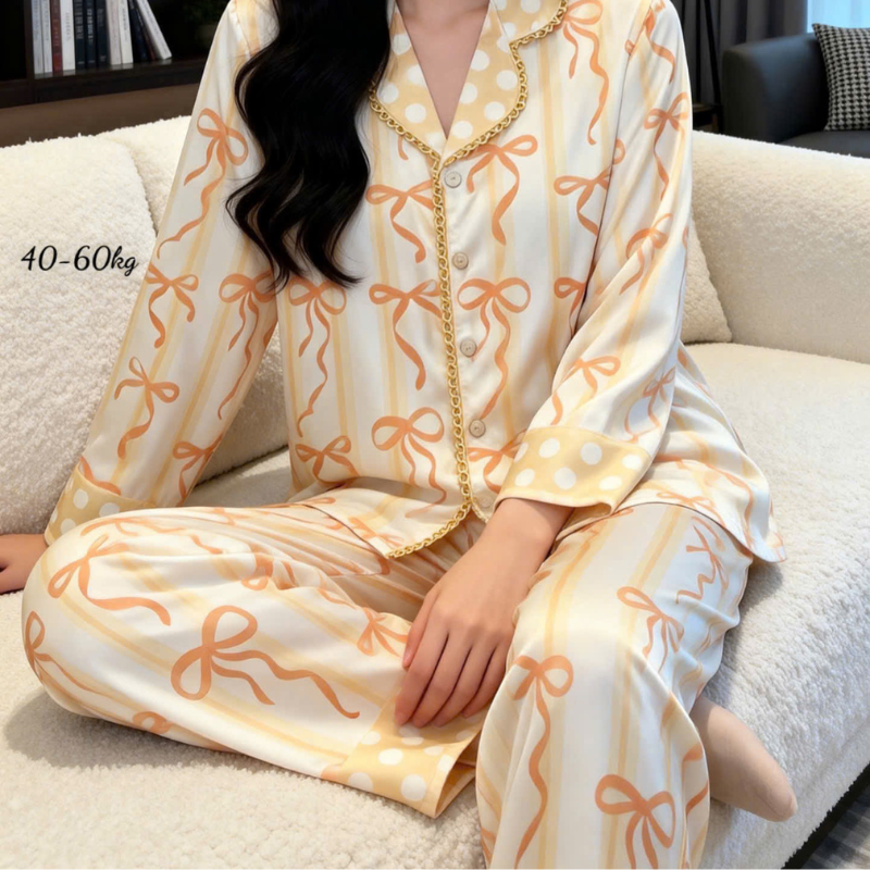 Giá sỉ đồ Bộ Pijama Nữ – Đồ Bộ Tay Dài Quần Dài Viền Ren Họa Tiết Size Thường 40-60kg