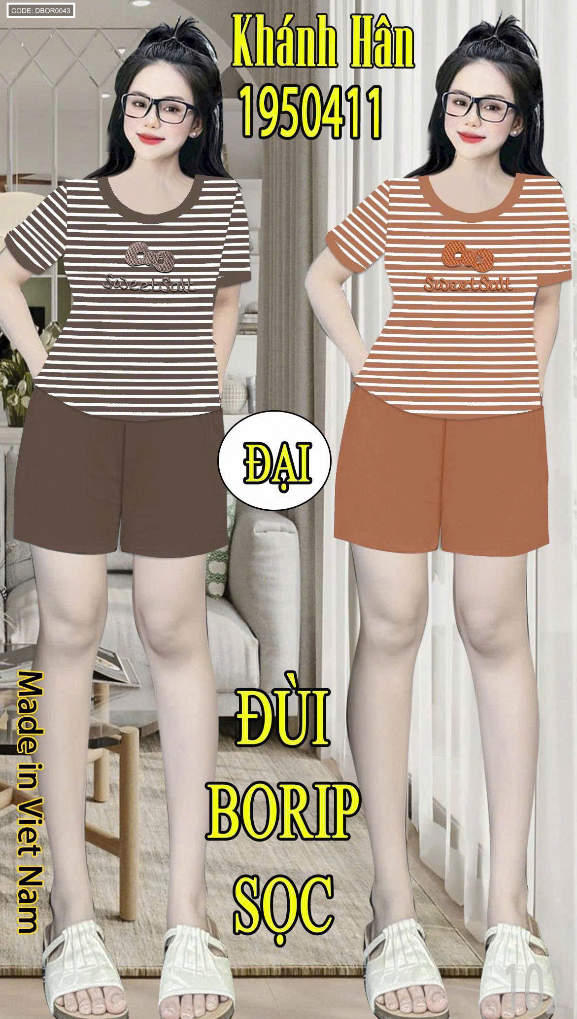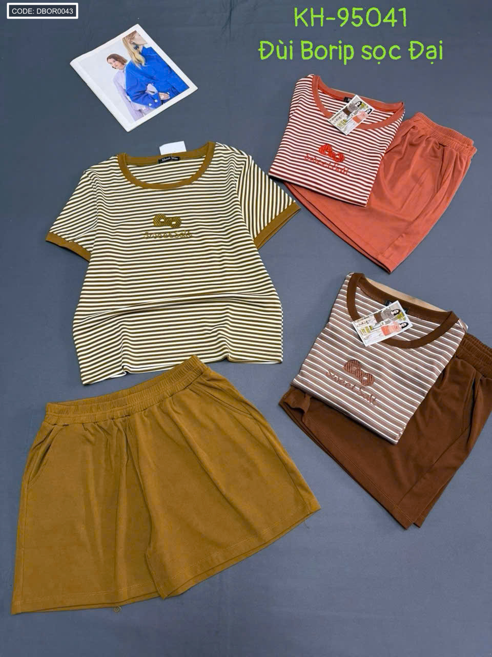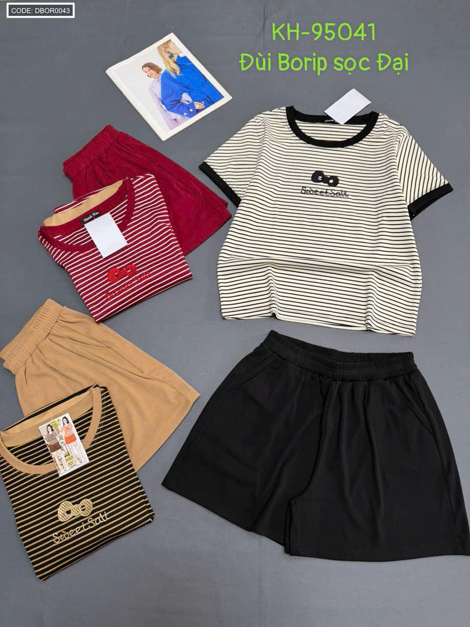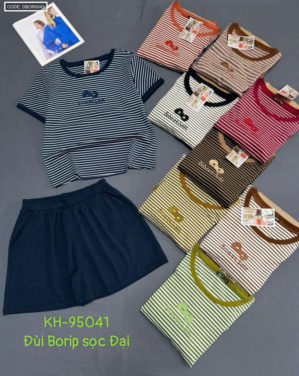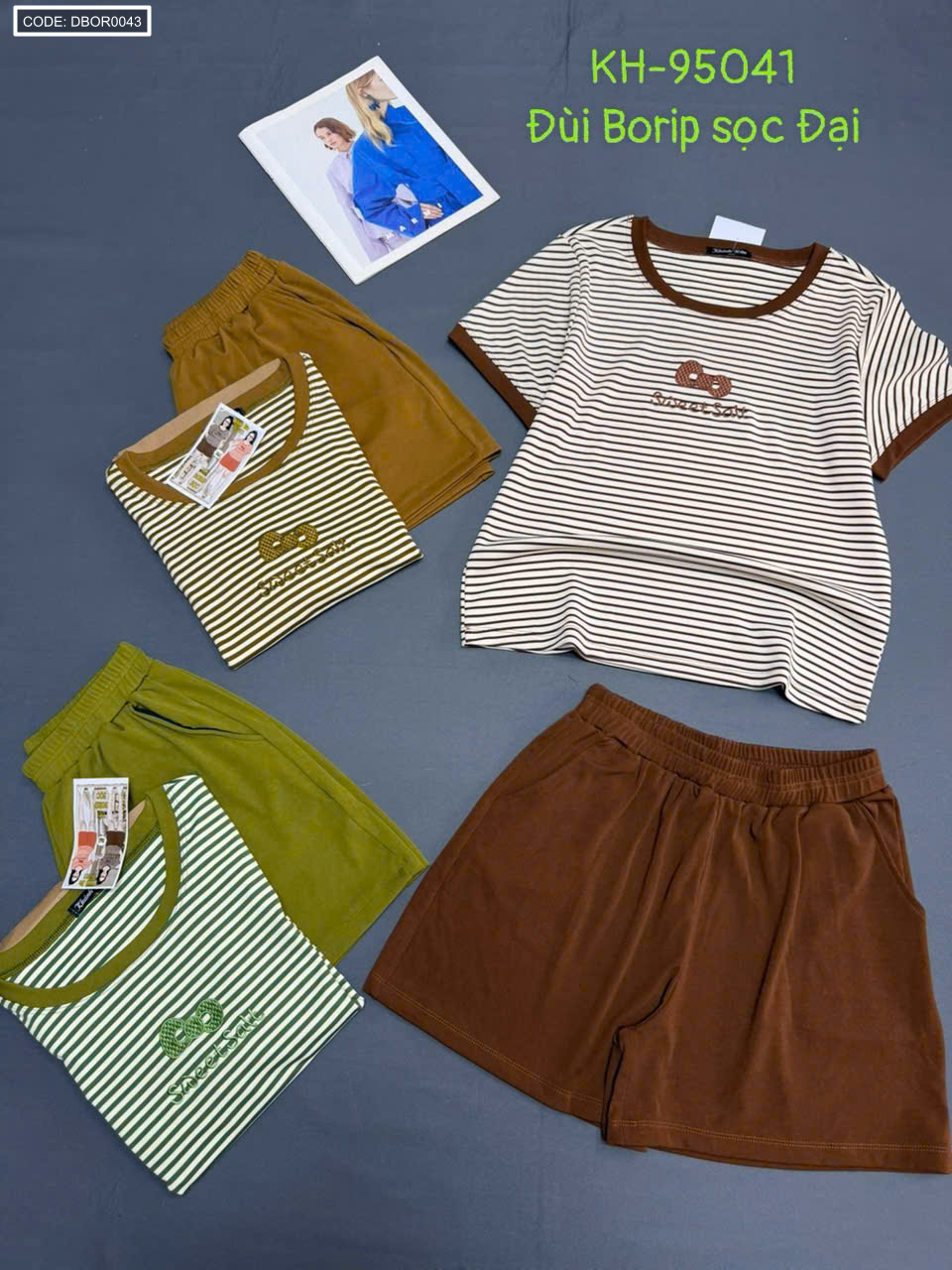 Giá sỉ đồ bộ tay ngắn quần đùi KH-95041 Đùi thun Borip sọc
