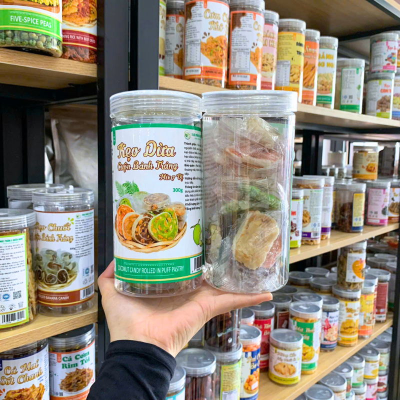 Giá sỉ kẹo Dừa Nướng – Kẹo Dừa Cuộn Bánh Phồng Mix 7 Vị Thơm Ngon 300g Hộp Pet