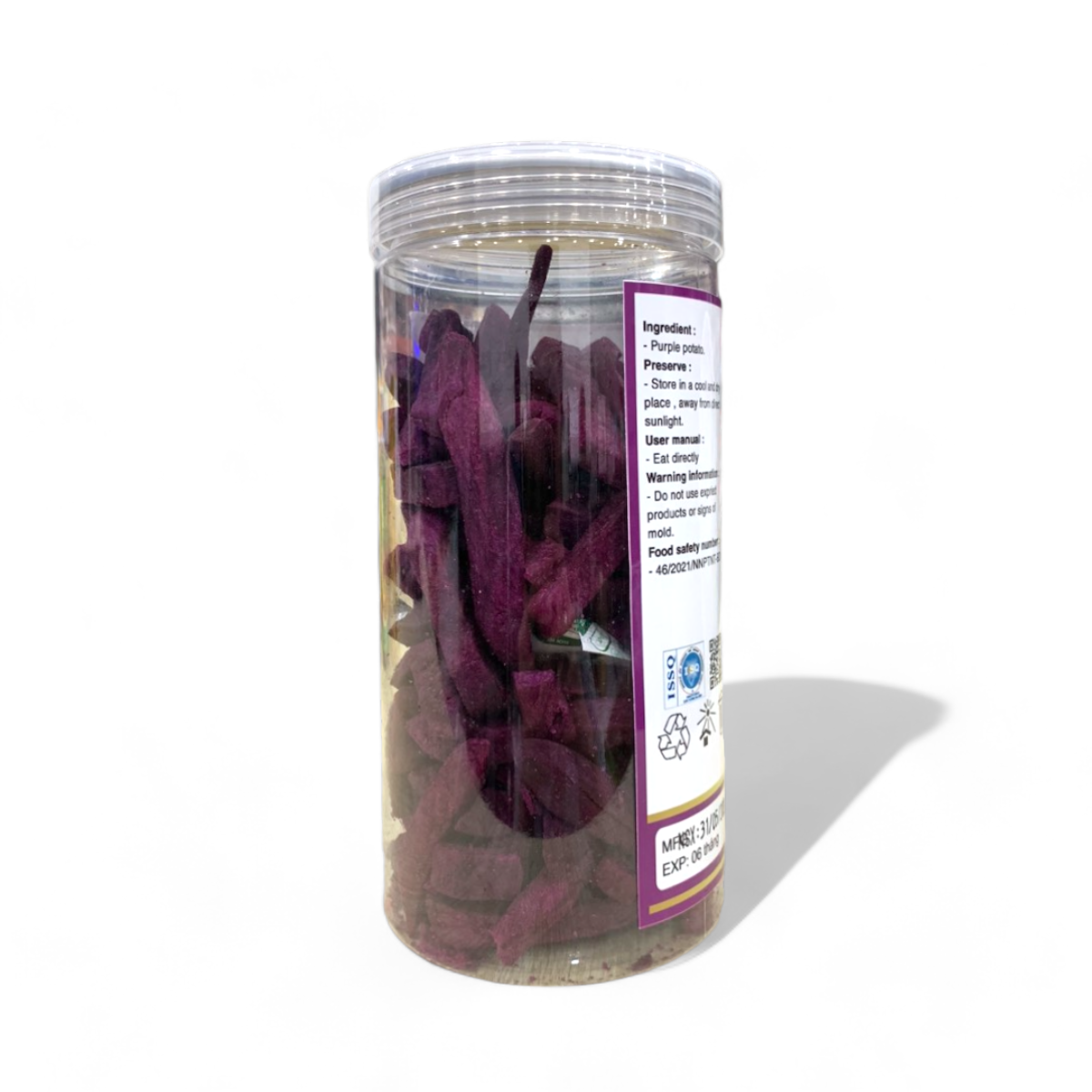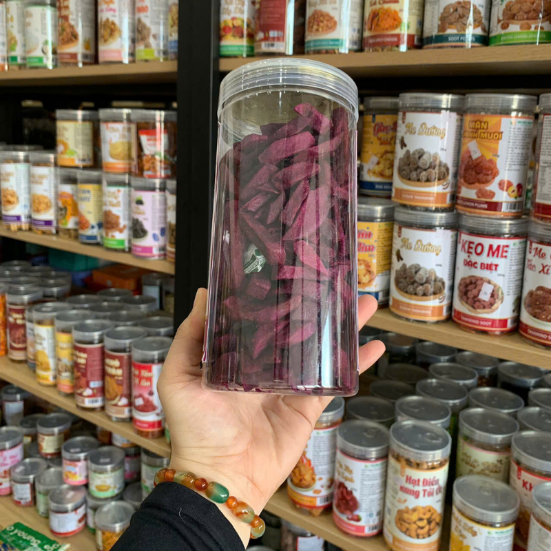 – Khoai Lang Tím Sấy vẫn giữ được màu sắc tự nhiên, không biến dạng, không caramel hóa, không bị thấm dầu với độ giòn vừa phải và hương vị thơm của khoai lang tím vẫn được bảo quản sau khi sấy.