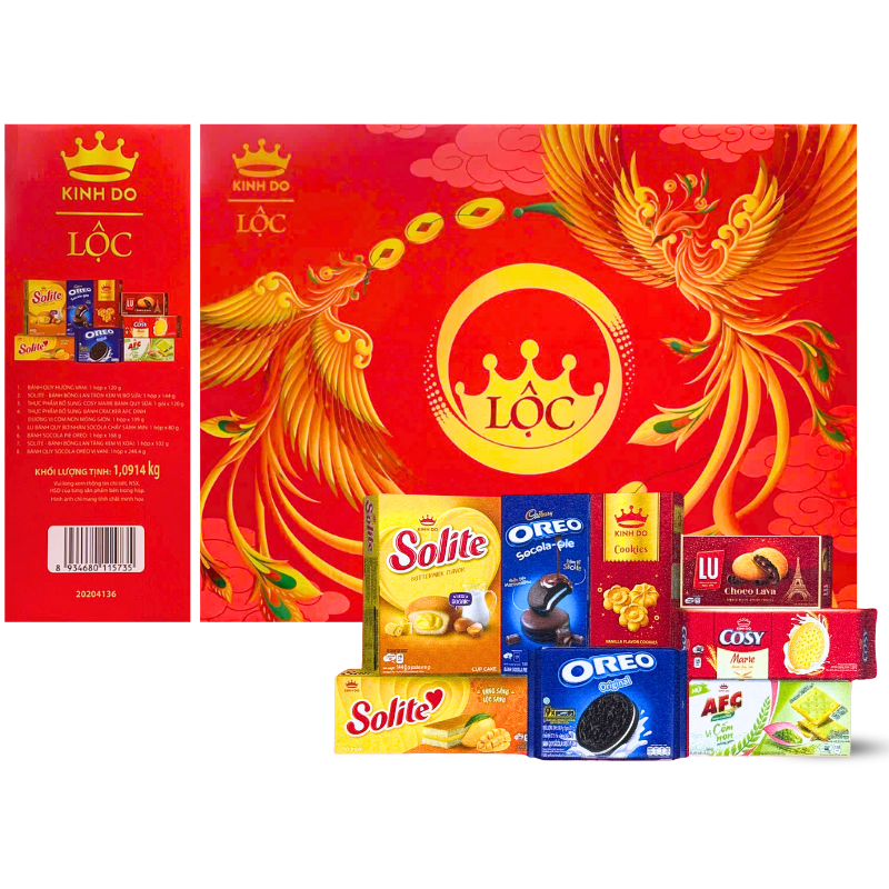Hộp Bánh Tết Lộc Thịnh Vượng Số 2 – Bộ Quà Tết Cặp Công Kinh Đô Lộc Thinh Vượng 8 Món 1,0914kg