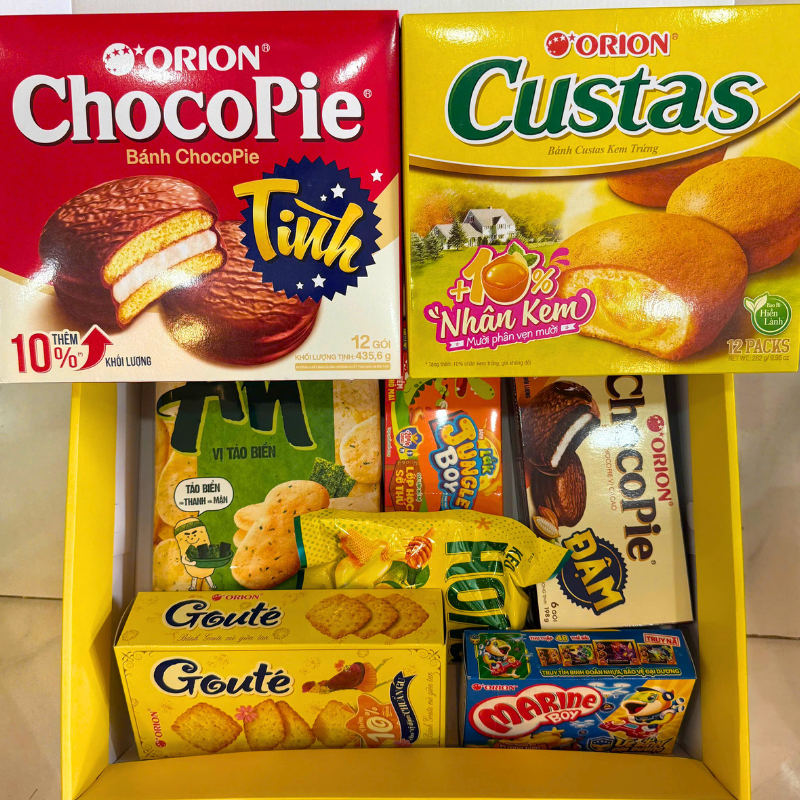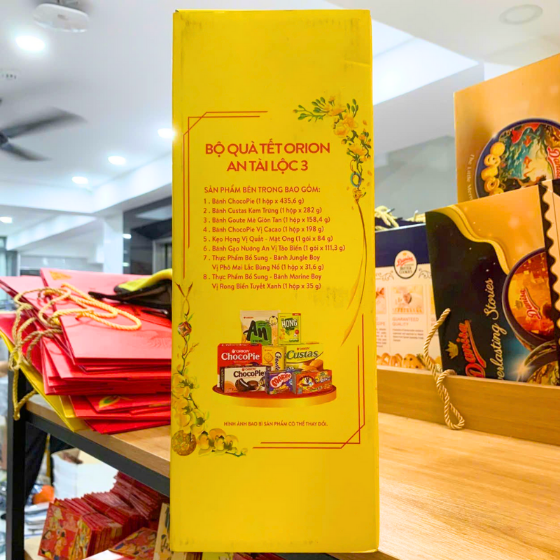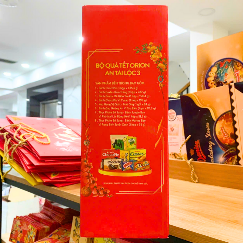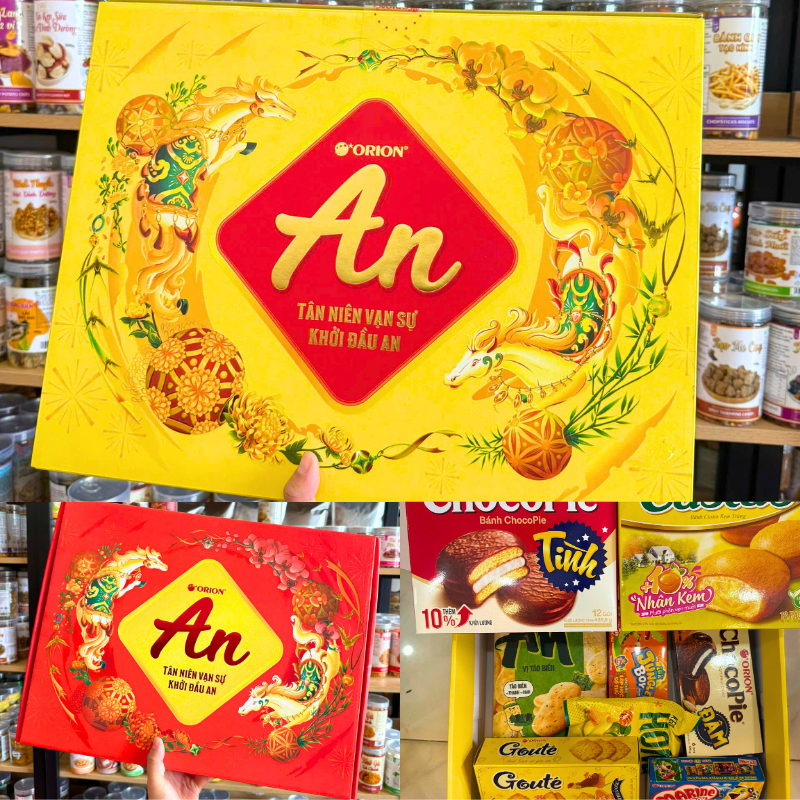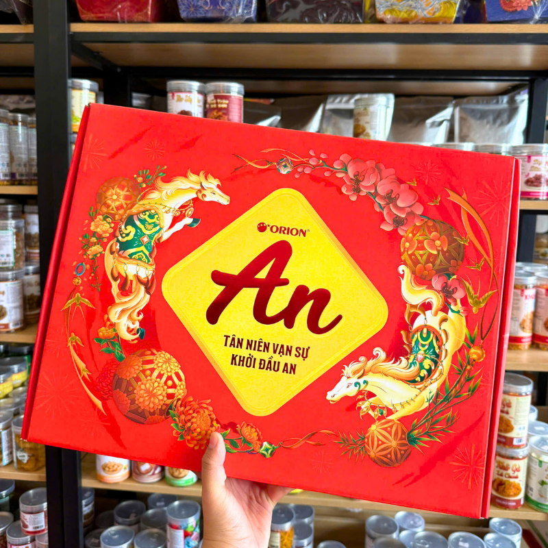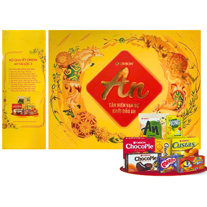 Hộp Bánh Tết Orion Tài Lộc 3 – Bộ Quà Tết Con Ngựa Orion An Tài Lộc 3 Hộp 1,3359kg Gồm 8 Món
