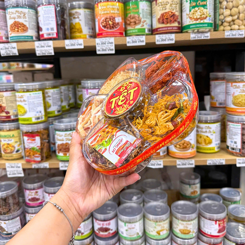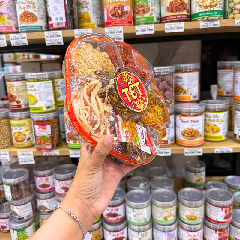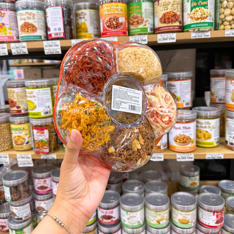 Hộp Qùa Tết Set Khô Lục Vị 2026 (Mực xé, khô gà lá chanh, khô tẩm vị heo, khô tẩm vị bò, chà bông xù)