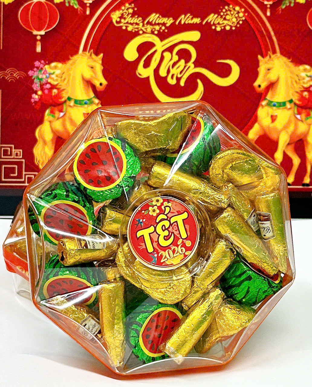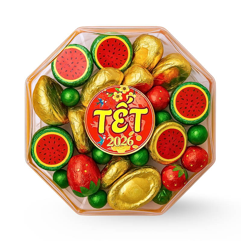 Hộp Quà Tết Kẹo Socola Mix 250g – Hộp Bát Giác