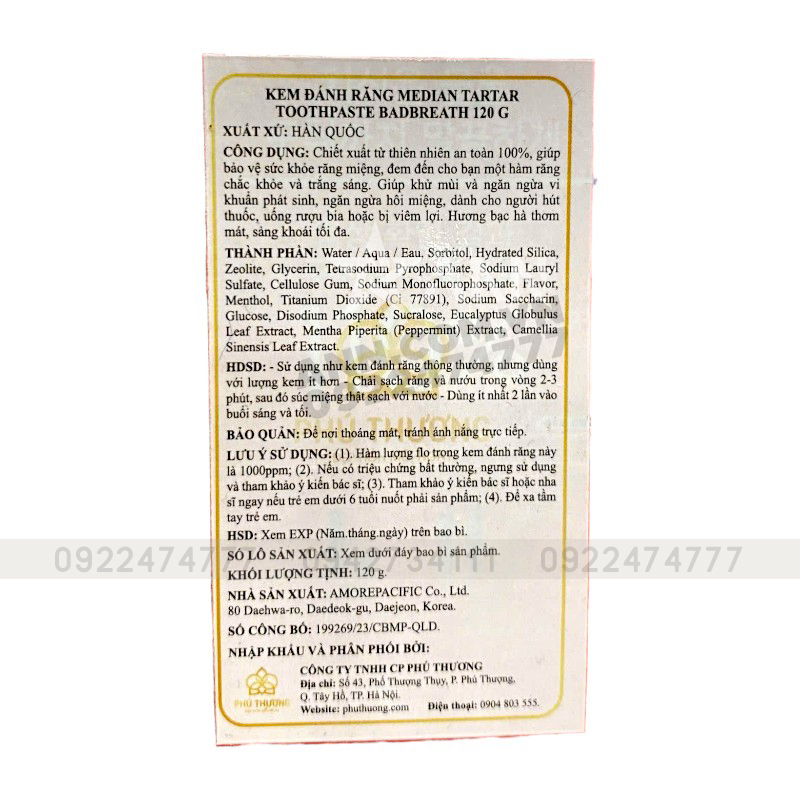 CÔNG DỤNG: Chiết xuất từ thiên nhiên an toàn 100%, giúp bảo vệ sức khỏe răng miệng, đem đến cho bạn một hàm răng chắc khỏe và trắng sáng. Giúp khử mùi và ngăn ngừa vi khuẩn phát sinh, ngăn ngừa hôi miệng, dành cho người hút thuốc, uống rượu bia hoặc bị viêm lợi. Hương bạc hà thơm mát, sảng khoái tối đa.