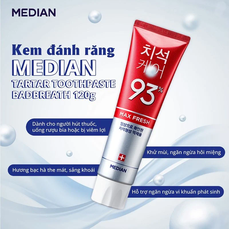 Kem Đánh Răng Median Màu Đỏ Dental IQ 93% Tartar Toothpaste Badbreath 120g