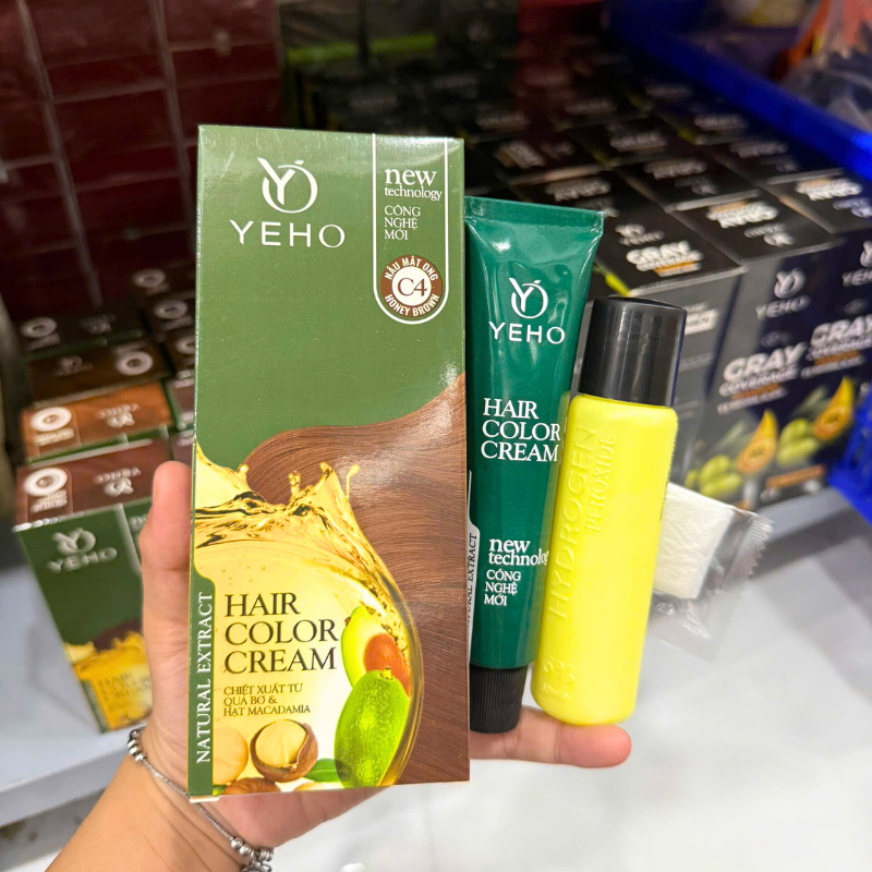 Nếu bạn muốn một màu nâu mật ong ấm áp, dễ hợp nhiều tông da, nhìn tự nhiên và gọn gàng mà vẫn tiện làm tại nhà thì YEHO C4 là lựa chọn rất ổn. Bộ này gồm kem nhuộm + oxy trợ nhuộm, thao tác đơn giản, phù hợp cho người bận rộn nhưng vẫn muốn tóc trông chỉn chu.