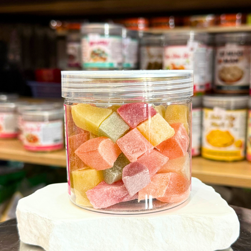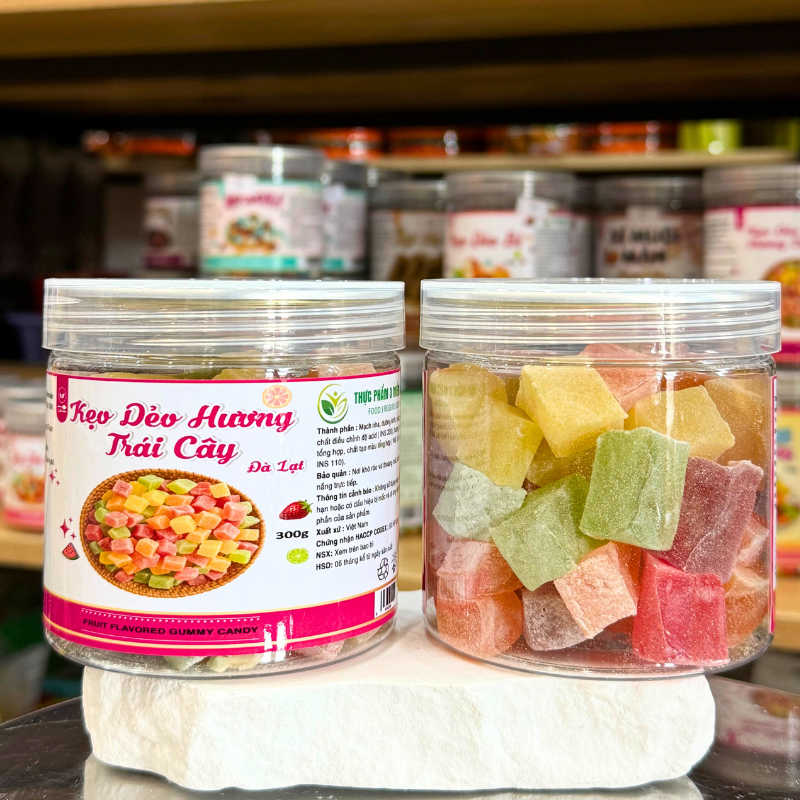 Kẹo Dẻo Vuông Hương Trái Cây (Kẹo Dẻo Đà Lạt) Mini 300g – Hộp Pet