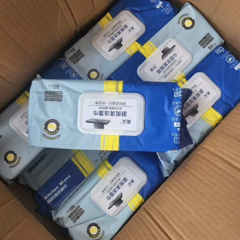 Khăn Ướt Lau Bếp Đa Năng – Khăn Lau Bàn Bếp Bát Đĩa Đa Năng An Toàn 1 Gói 80 Miếng 30x11x5cm