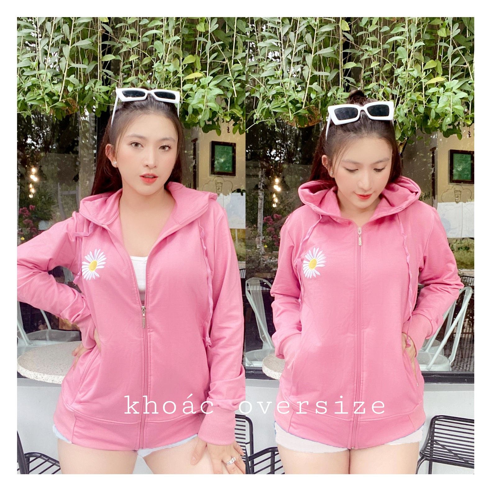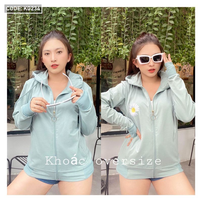 Áo khoác nữ có nón thêu hoa cúc