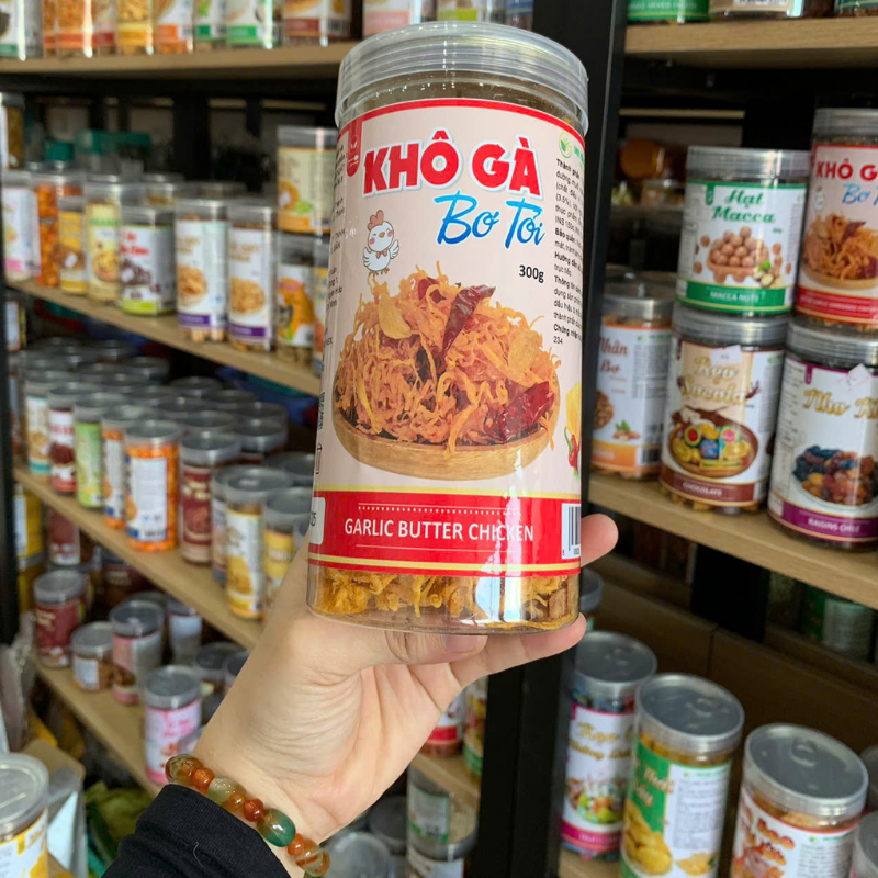 Khô Gà Bơ Tỏi Thơm Ngon 300g Hộp