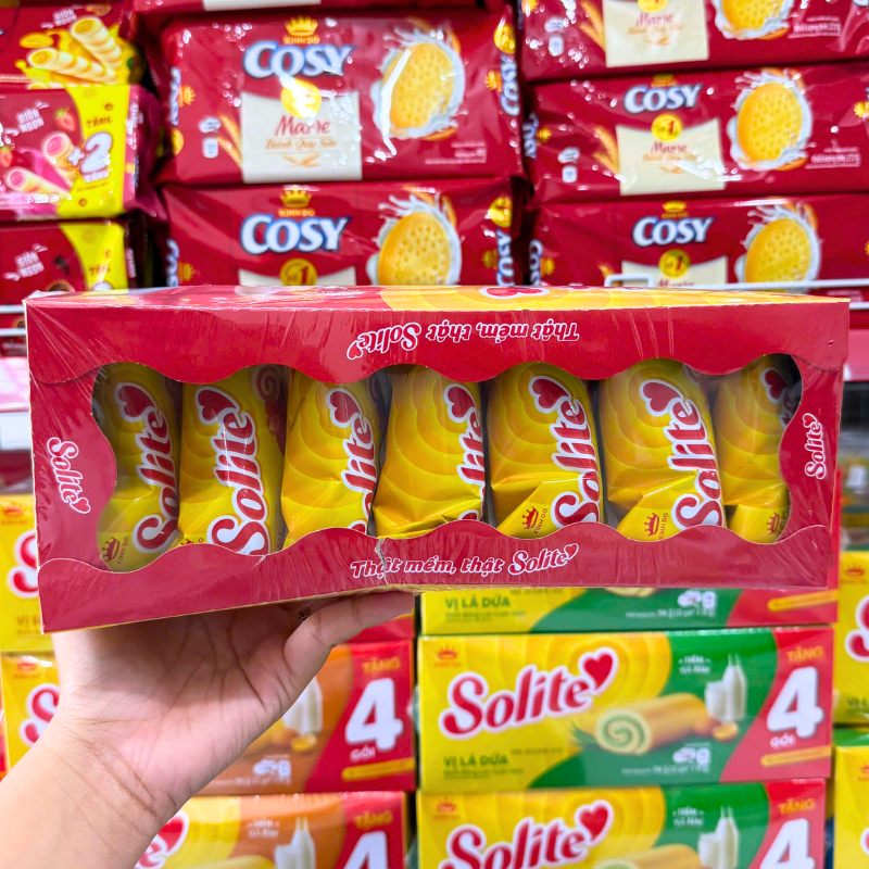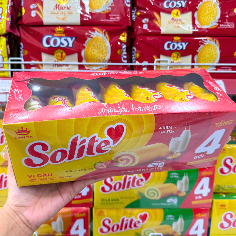 Kho sỉ bánh Bông Lan Cuộn Solite Vị Dâu Hộp Giấy Lớn 396g