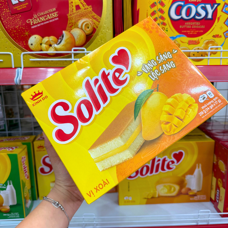 Kho sỉ bánh Solite Trứng Kem Vị Xoài – Bánh Kinh Đô Solite Xoài 238g (14 Gói x 17g)