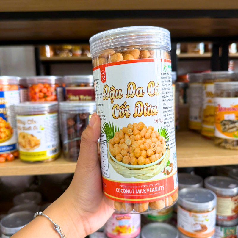 Kho sỉ đậu Phộng Da Cá Cốt Dừa Thơm Ngon 500g Hộp Pet