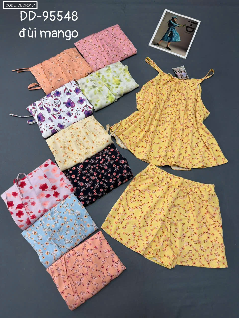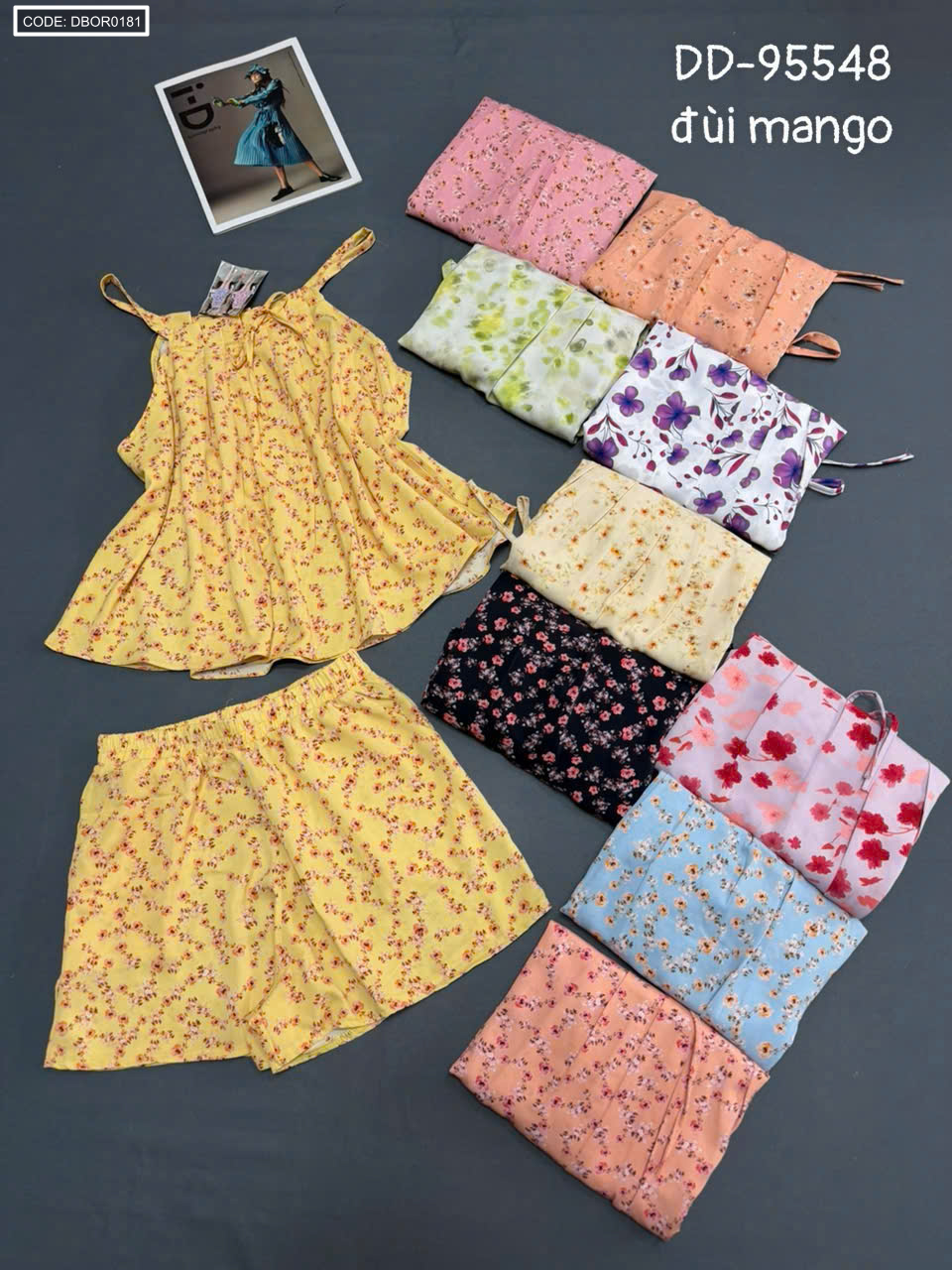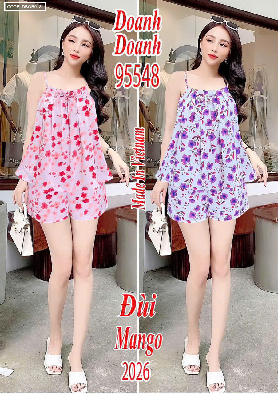 Kho sỉ đồ bộ nữ 2 dây quần đùi vải mango hoa DD-95548