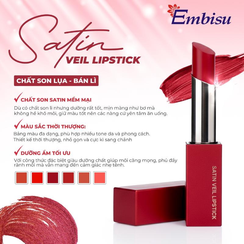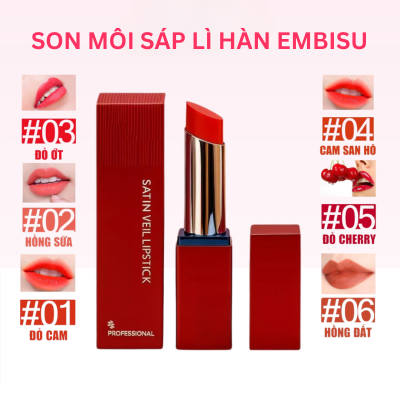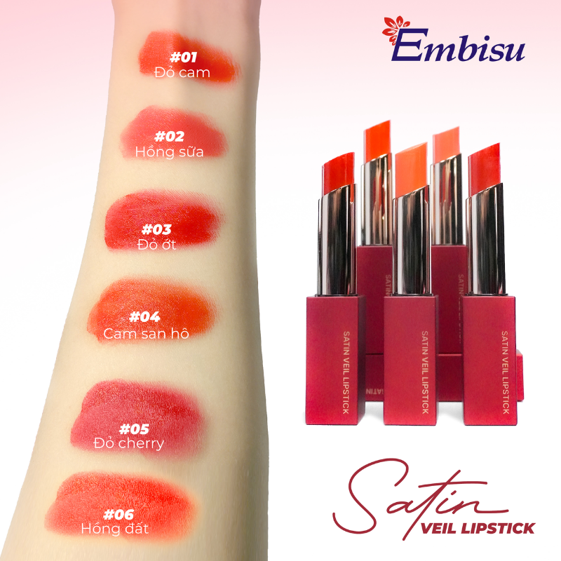 Kho sỉ son Môi Sáp Lì Hàn Quốc Embisu Satin Veil Lipstick – 6 Màu