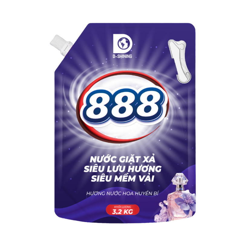 Nước Giặt Xả Cao Cấp 888 D-Shining Hương Nước Hoa 3,2kg – Túi Màu Tím