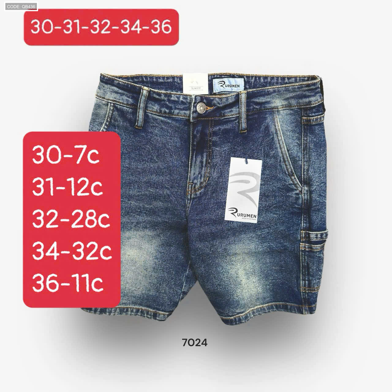Quần Short Jeans Nam Rurumen Cao Cấp Chất Liệu Co Giãn (Có size 36)