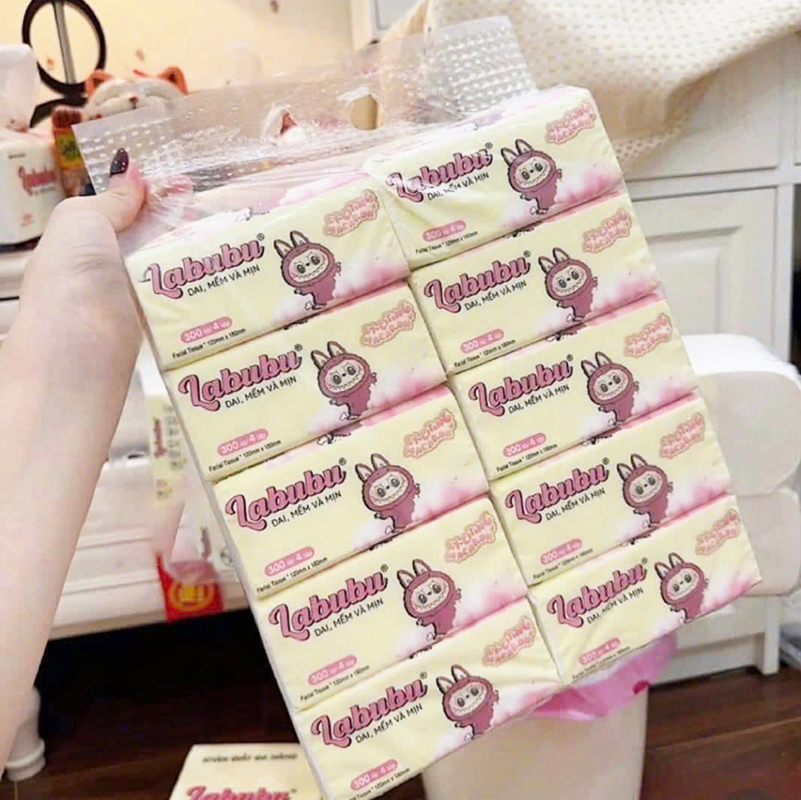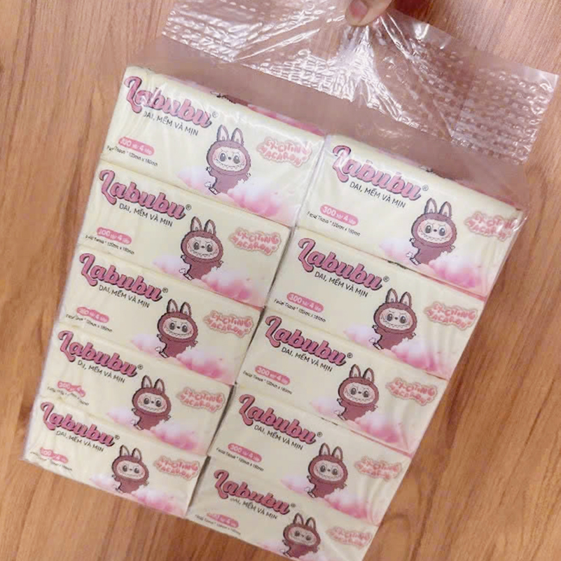 Set 10 Gói Túi Khăn Giấy Rút 4 Lớp 300 Tờ Cao Cấp – Khăn Giấy Rút Labubu Đa Năng 12x18cm