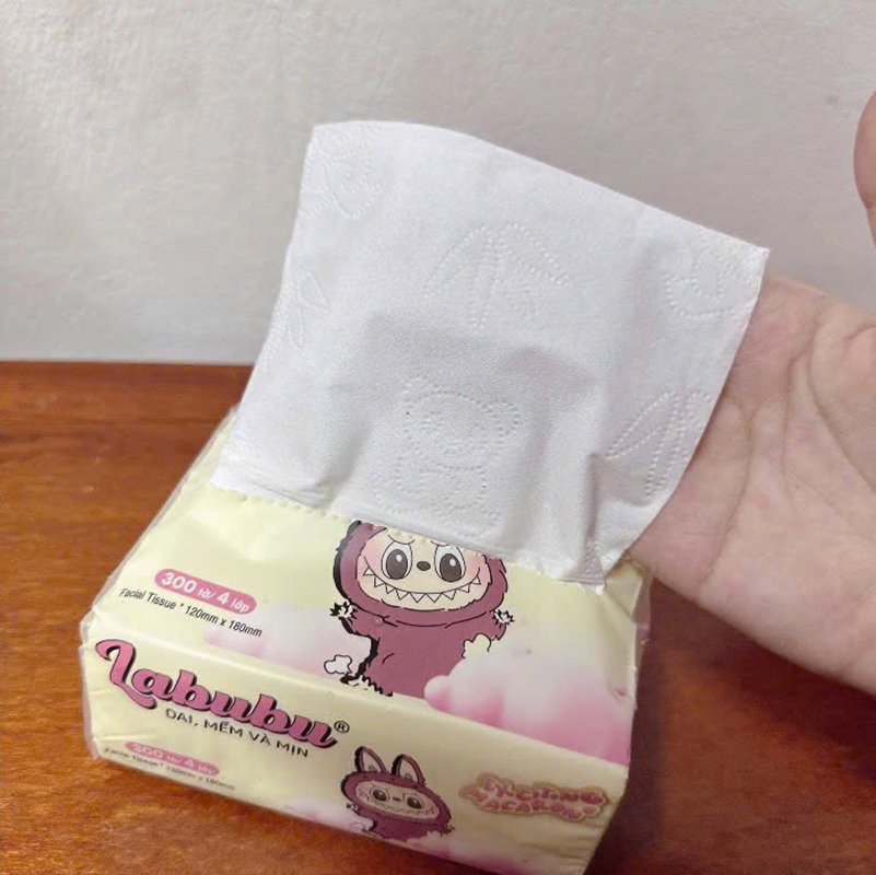 TÊN SẢN PHẨM : NGUYÊN BỊCH 10 Gói Giấy Rút LABUBU Cao Cấp 300 Tờ – 4 Lớp