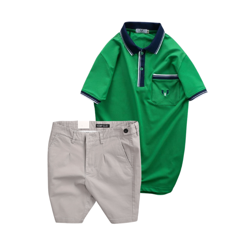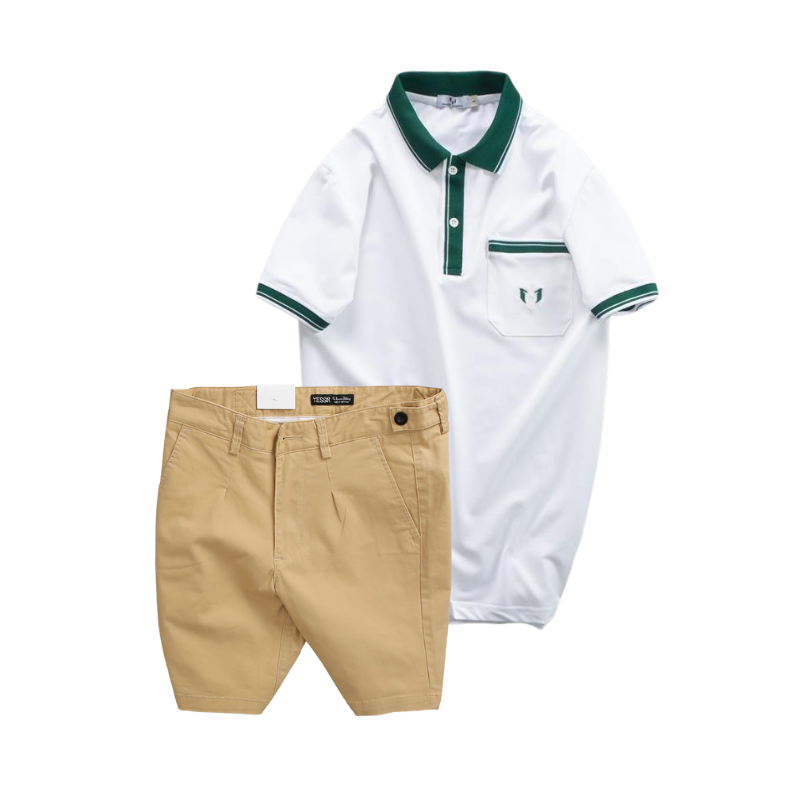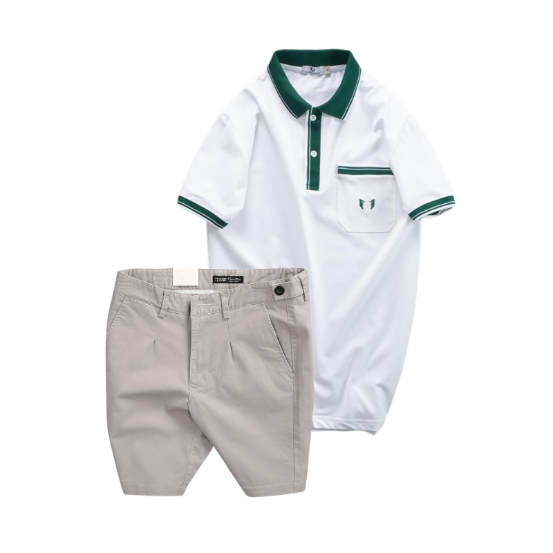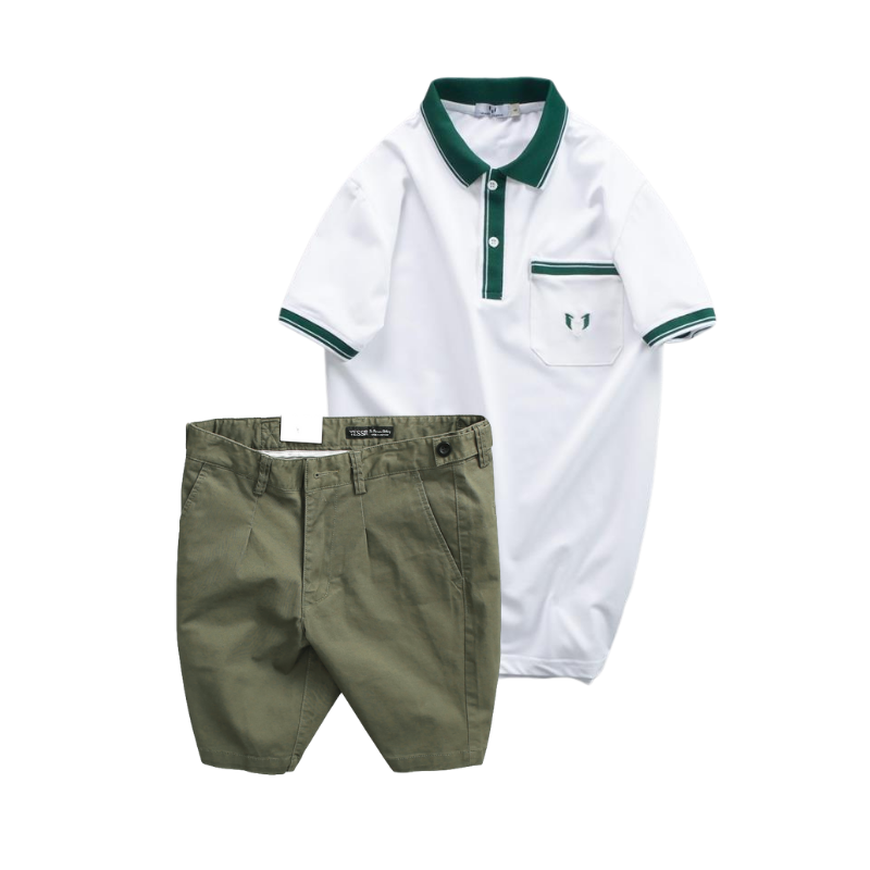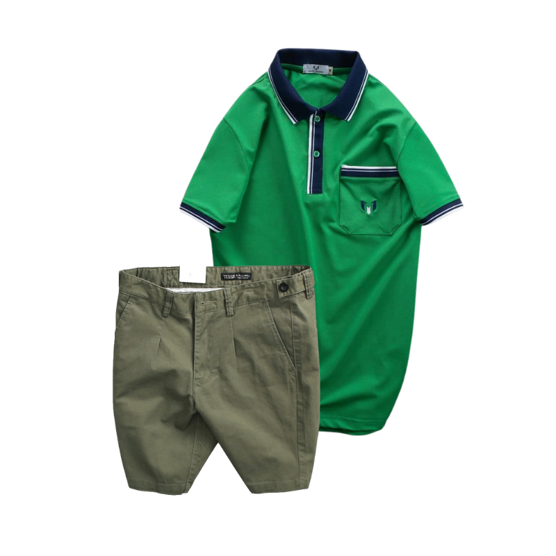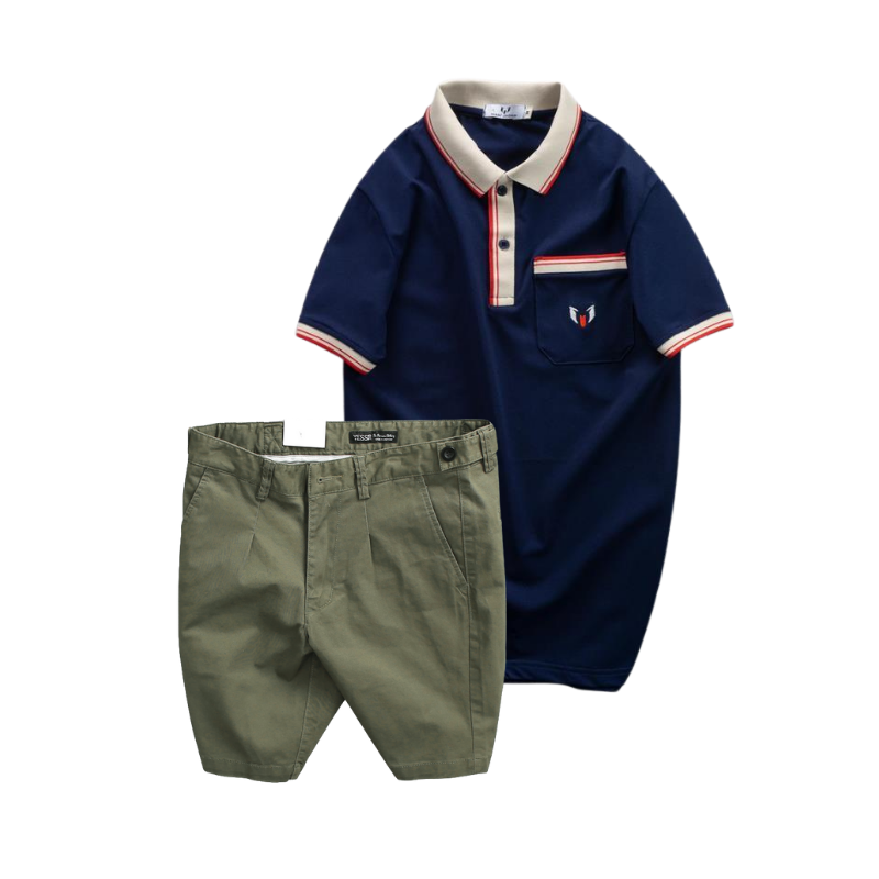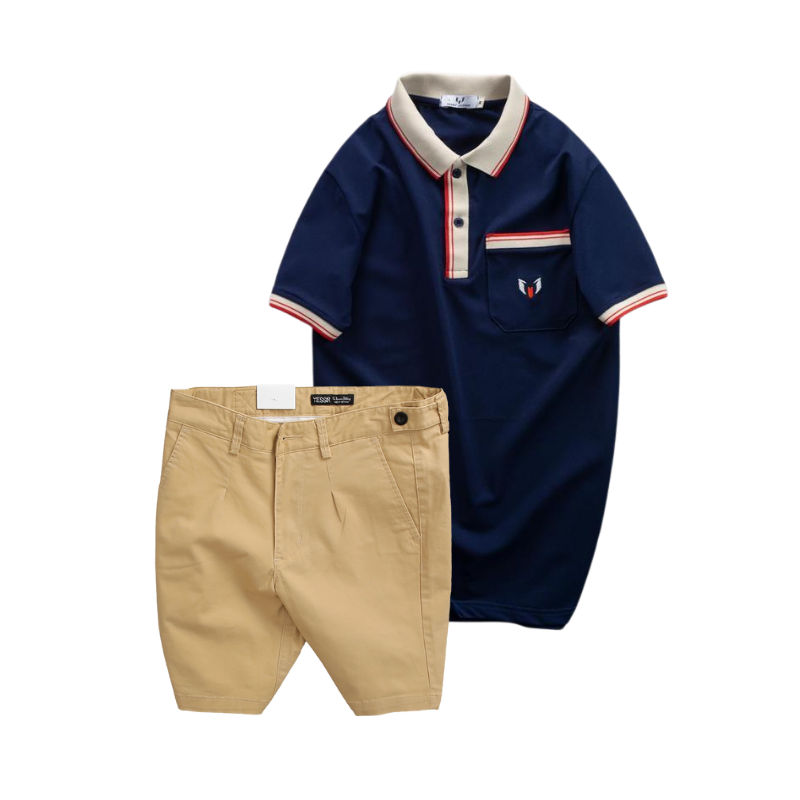 Set Bộ Nam – Áo Thun Nam Polo Cổ Bẻ Cá Sấu Poly Túi Nhỏ Thêu Logo Và Quần Short Kaki Co Giãn Phối Nút Cao Cấp (Có Size 36)