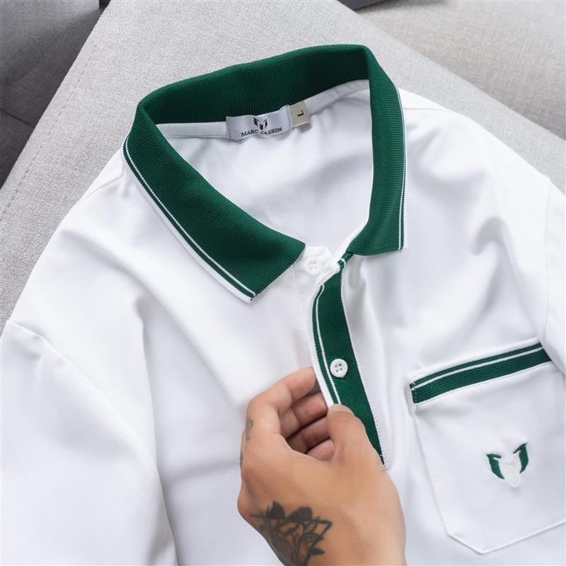 - Thiết kế áo cổ bẻ có túi thêu logo bền đẹp