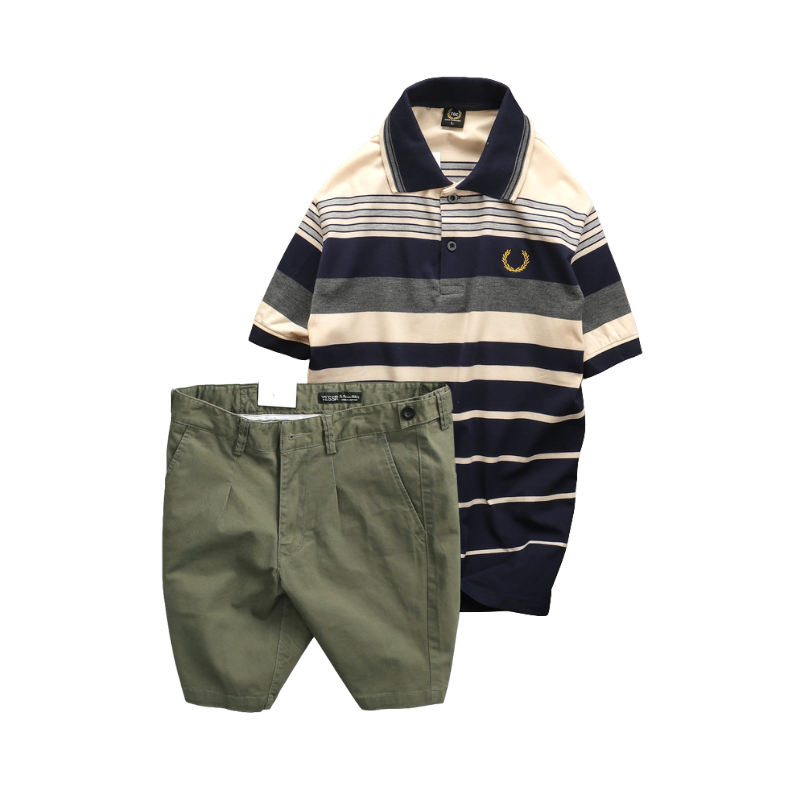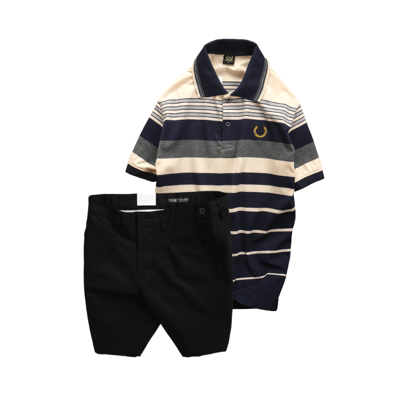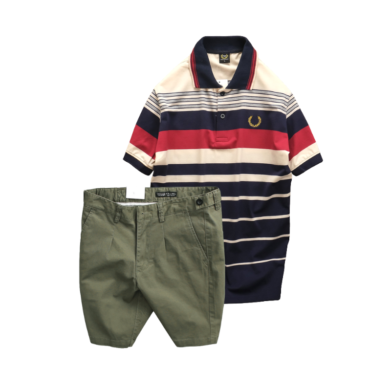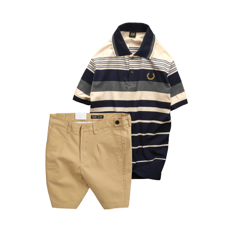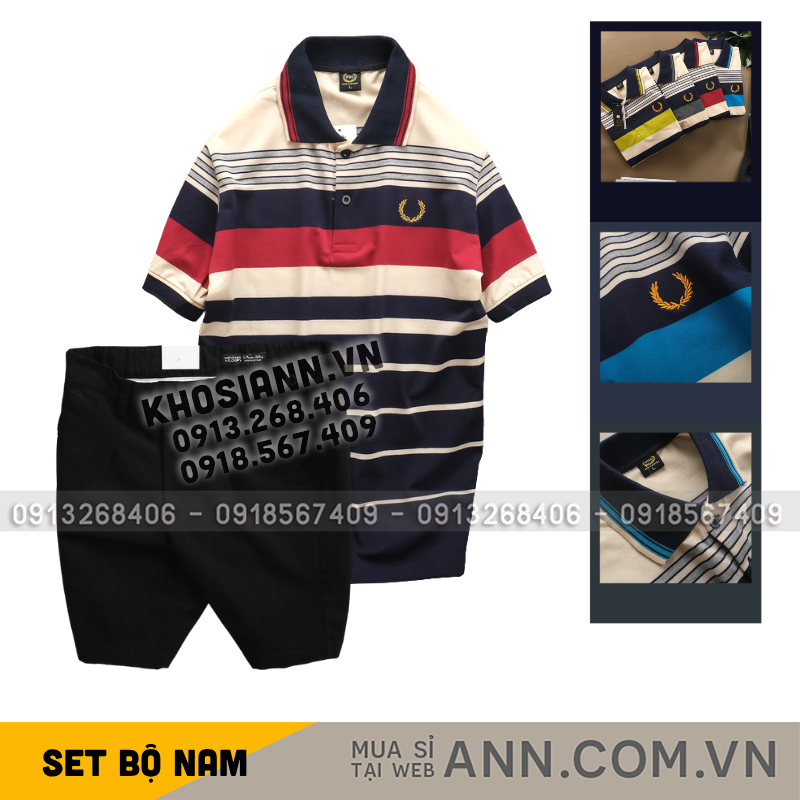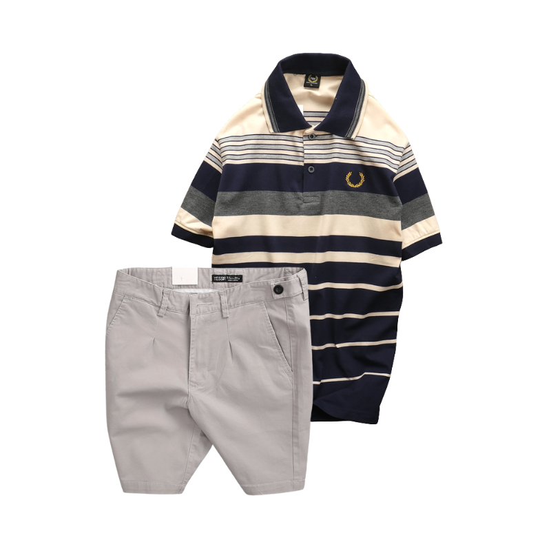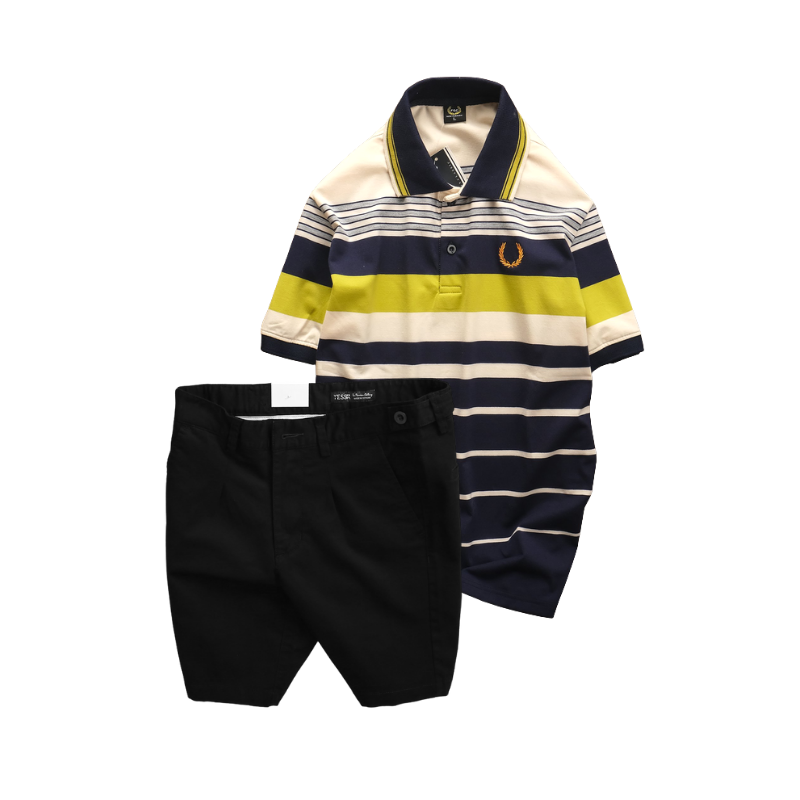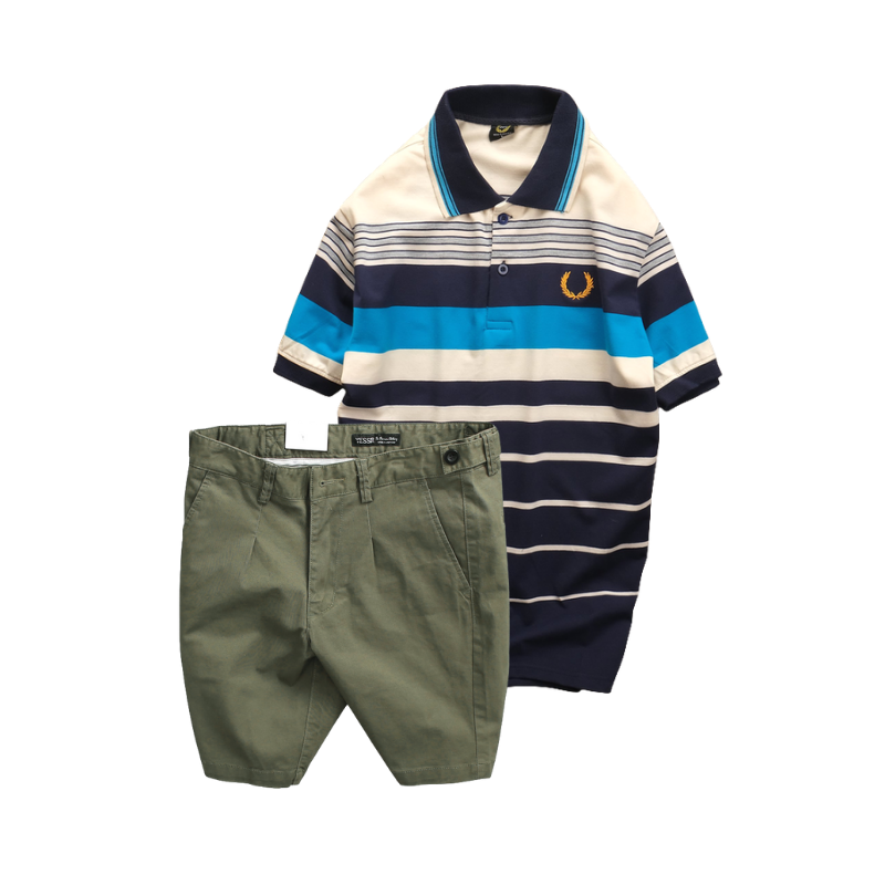 Set Bộ Nam – Áo Thun Nam Polo Cổ Bẻ Phối Sọc Vải Cotton Thêu Logo Hoàng Gia Và Quần Short Kaki Co Giãn Phối Nút Cao Cấp (Có Size 36)