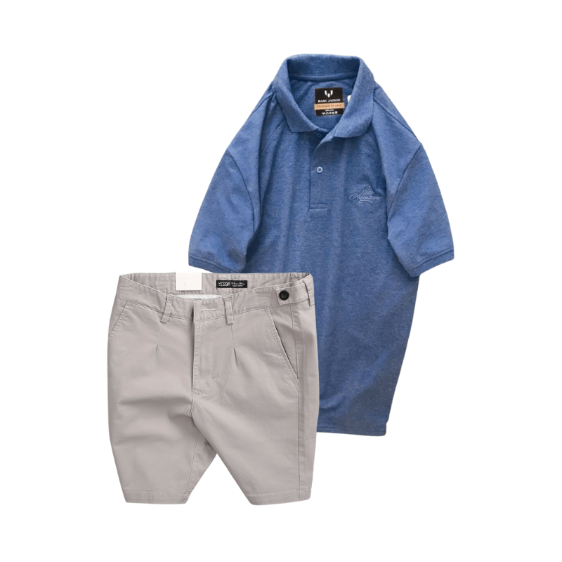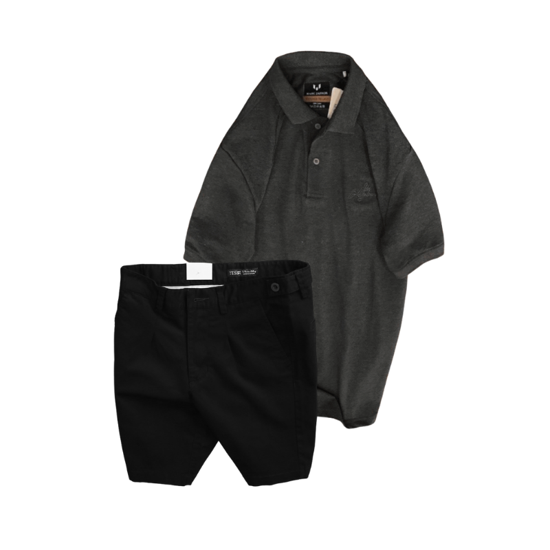 Set Bộ Nam – Áo Thun Nam Polo Cổ Bẻ Thêu Chữ Trước Ngực Cao Cấp Và Quần Short Kaki Co Giãn Phối Nút Cao Cấp (Có Size 36)