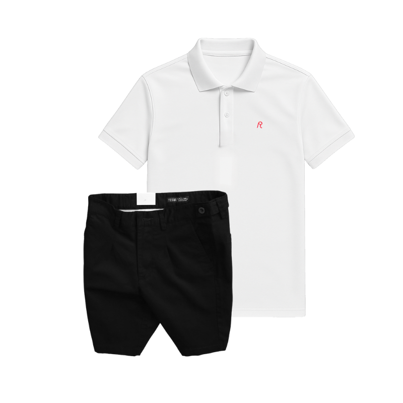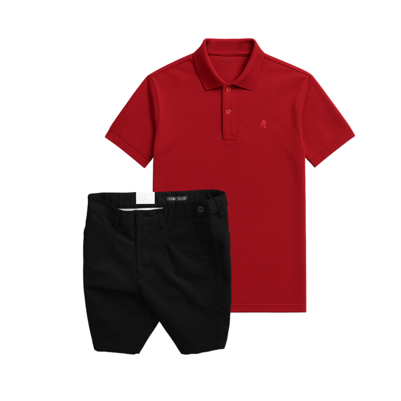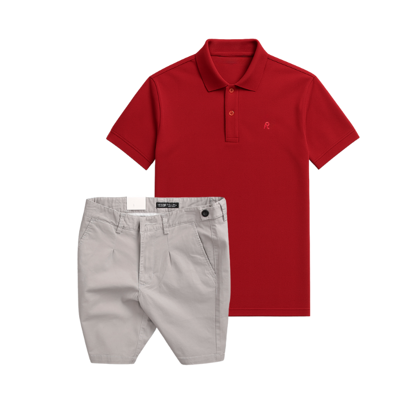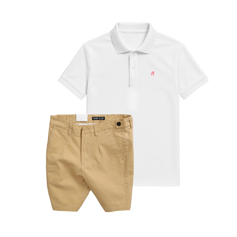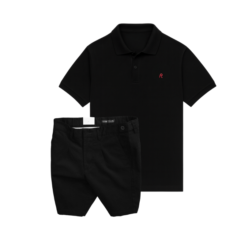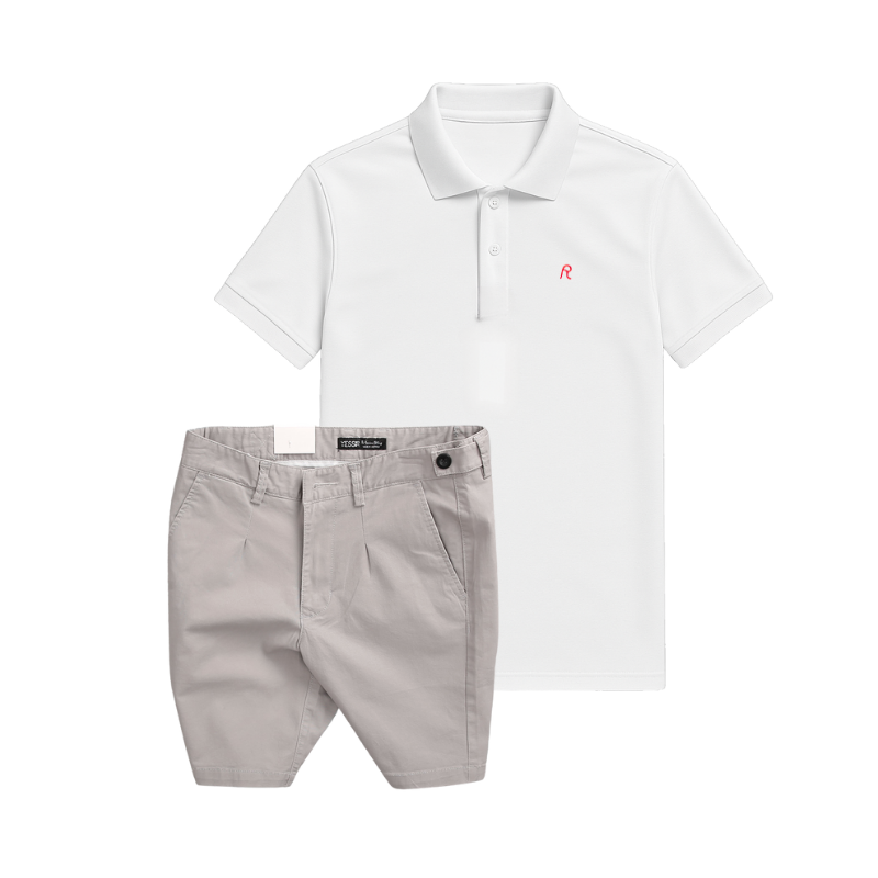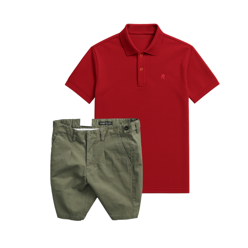 Set Bộ Nam – Áo Thun Nam Polo Cổ Bẻ Thêu Logo Chữ R Trước Ngực Và Quần Short Kaki Co Giãn Phối Nút Cao Cấp (Có Size 36)