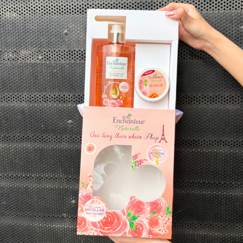 Set Quà Tặng Sữa Tắm Enchanteur Naturelle Hương Hoa Hồng & Tẩy Tế Bào Chết Body (Set Màu Cam)