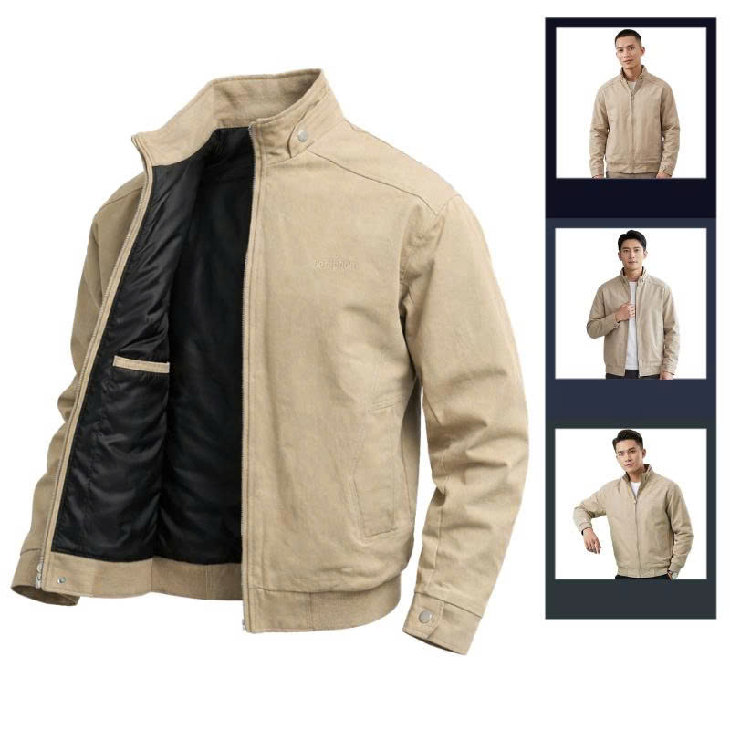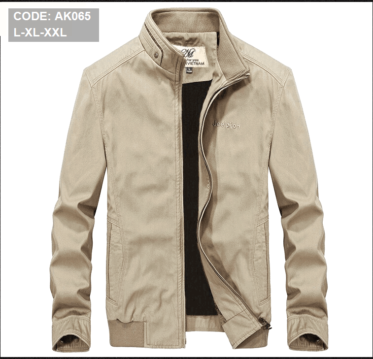 Shop sỉ áo Khoác Kaki Nam Cổ Trụ 2 Lớp Thêu Logo