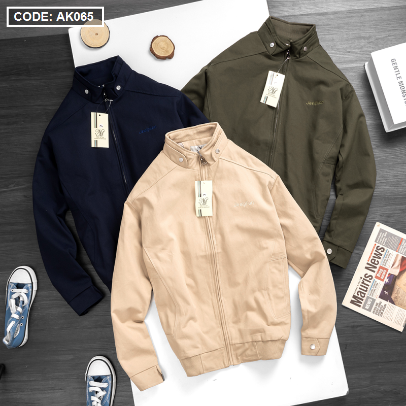 Shop sỉ áo Khoác Kaki Nam Cổ Trụ 2 Lớp Thêu Logo