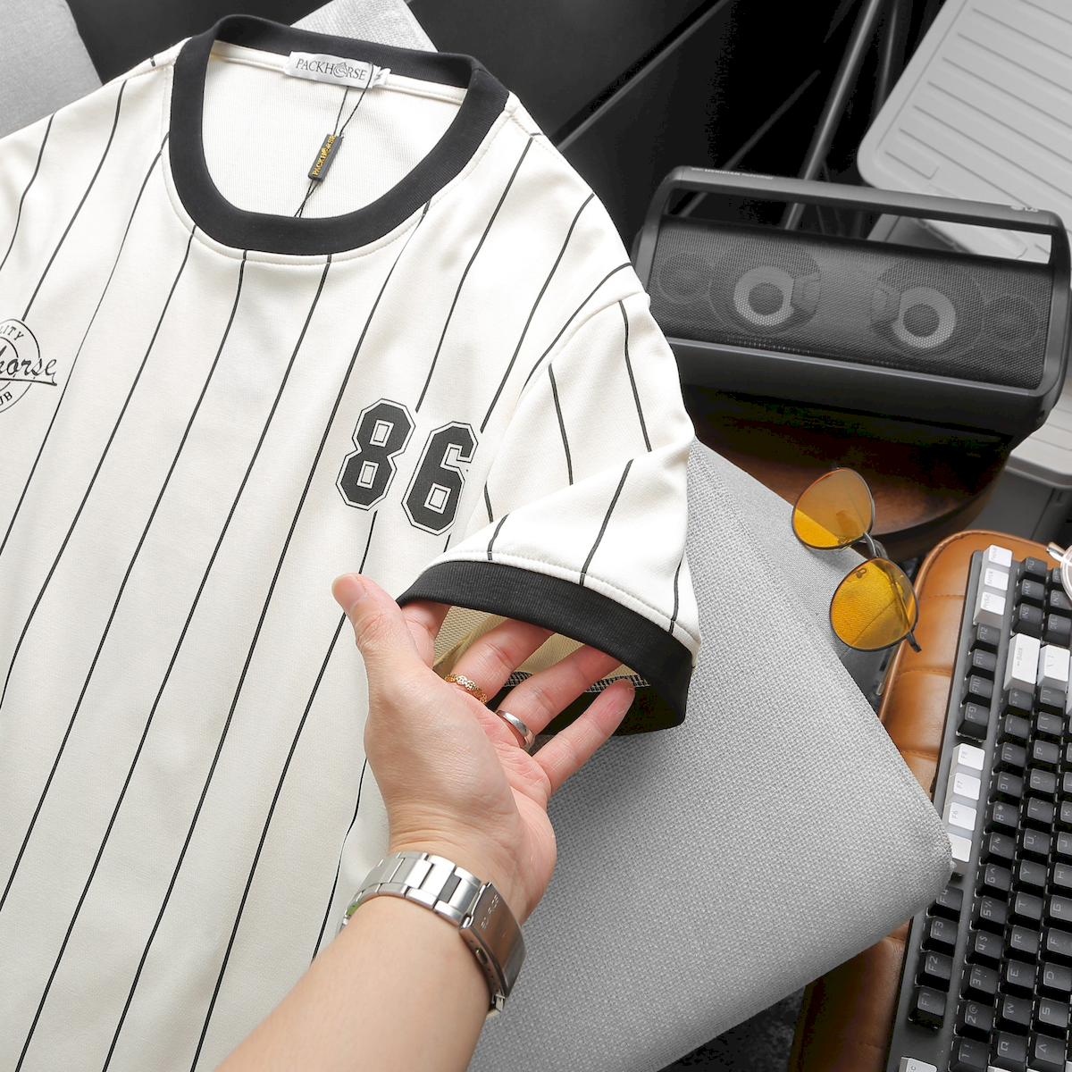 Họa tiết in logo lạ mắt: Áo được thiết kế với họa tiết in logo số 86 độc đáo, tạo nên điểm nhấn cho bộ trang phục của bạn.