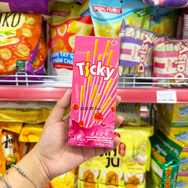 Shop sỉ bánh Que Đũa Phủ Dâu Ticky Uni Firms – Màu Hồng