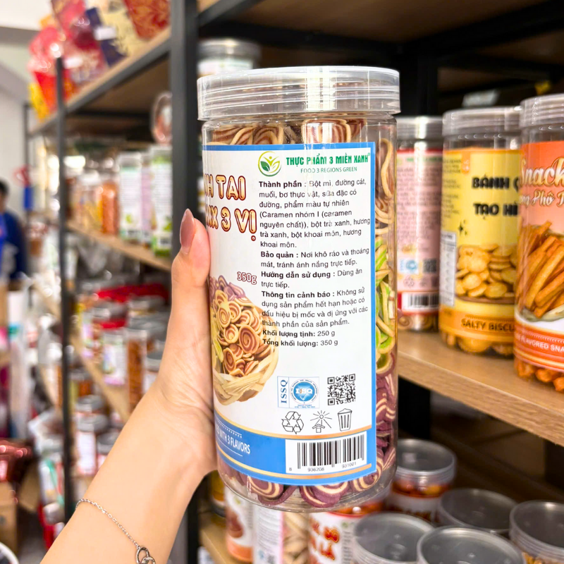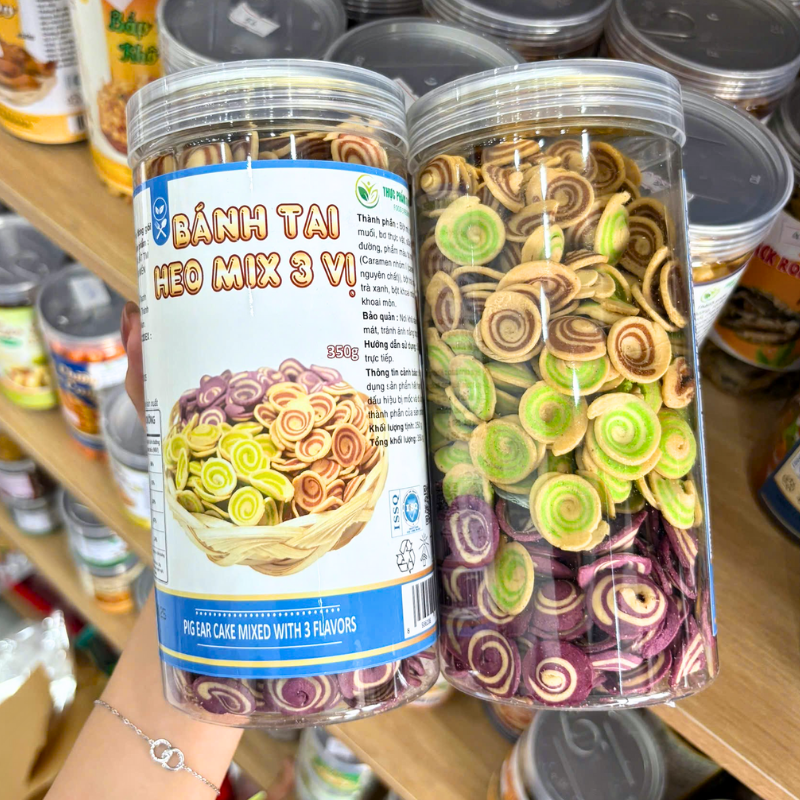 Shop sỉ bánh Tai Heo Mix 3 Vị Caramel, Khoai Môn, Trà Xanh 350g Thơm Ngon – Hũ Pet