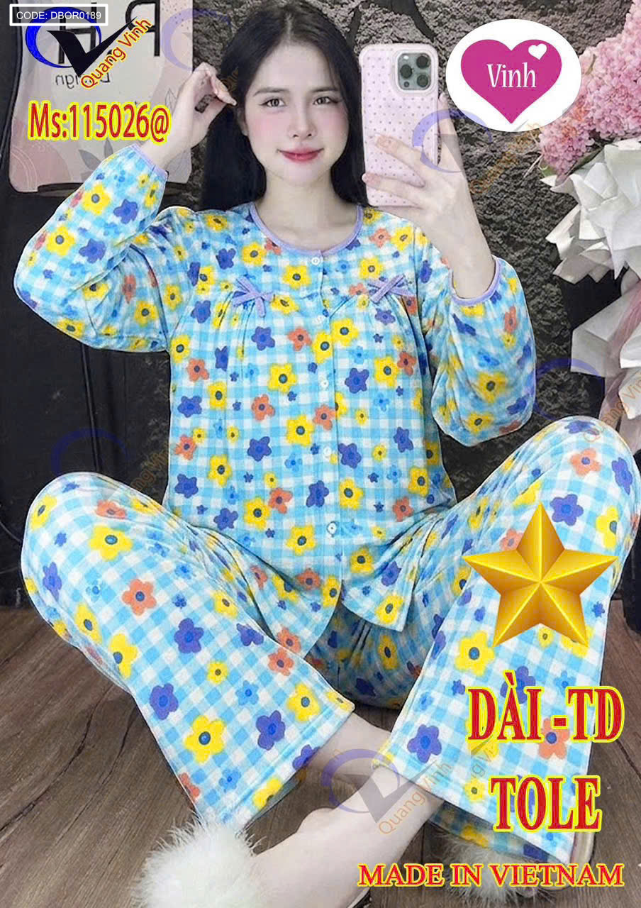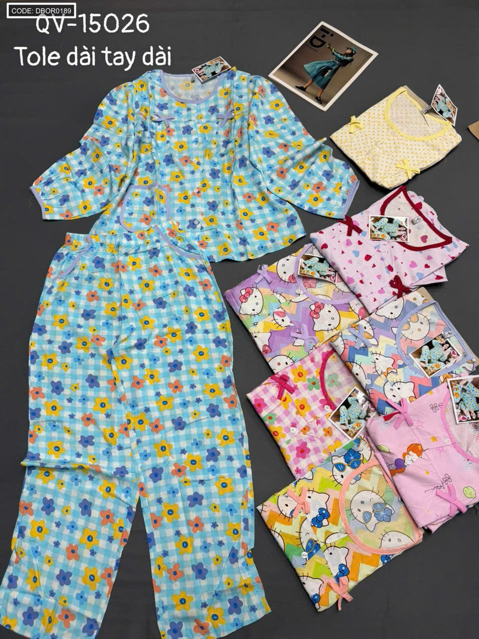 Shop sỉ đồ bộ nữ tay dài quần dài baby doll vải tole QV-15026