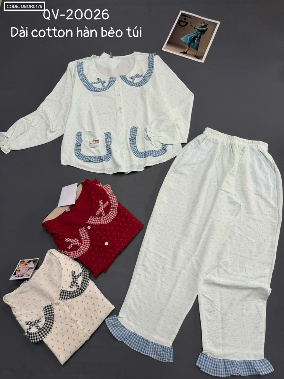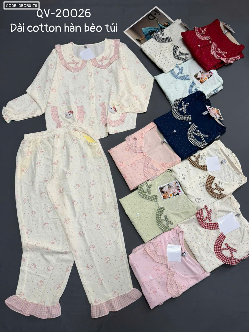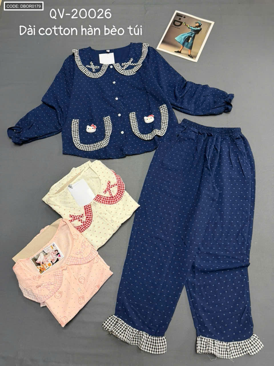 Shop sỉ đồ bộ nữ tay dài quần dài chất cotton hàn ko giãn QV-20026