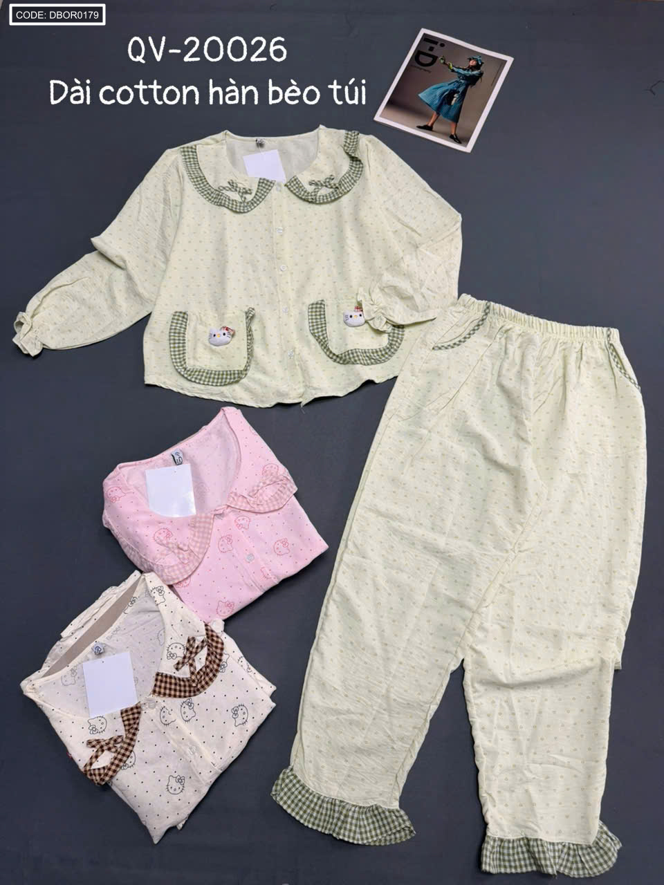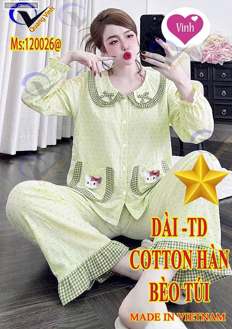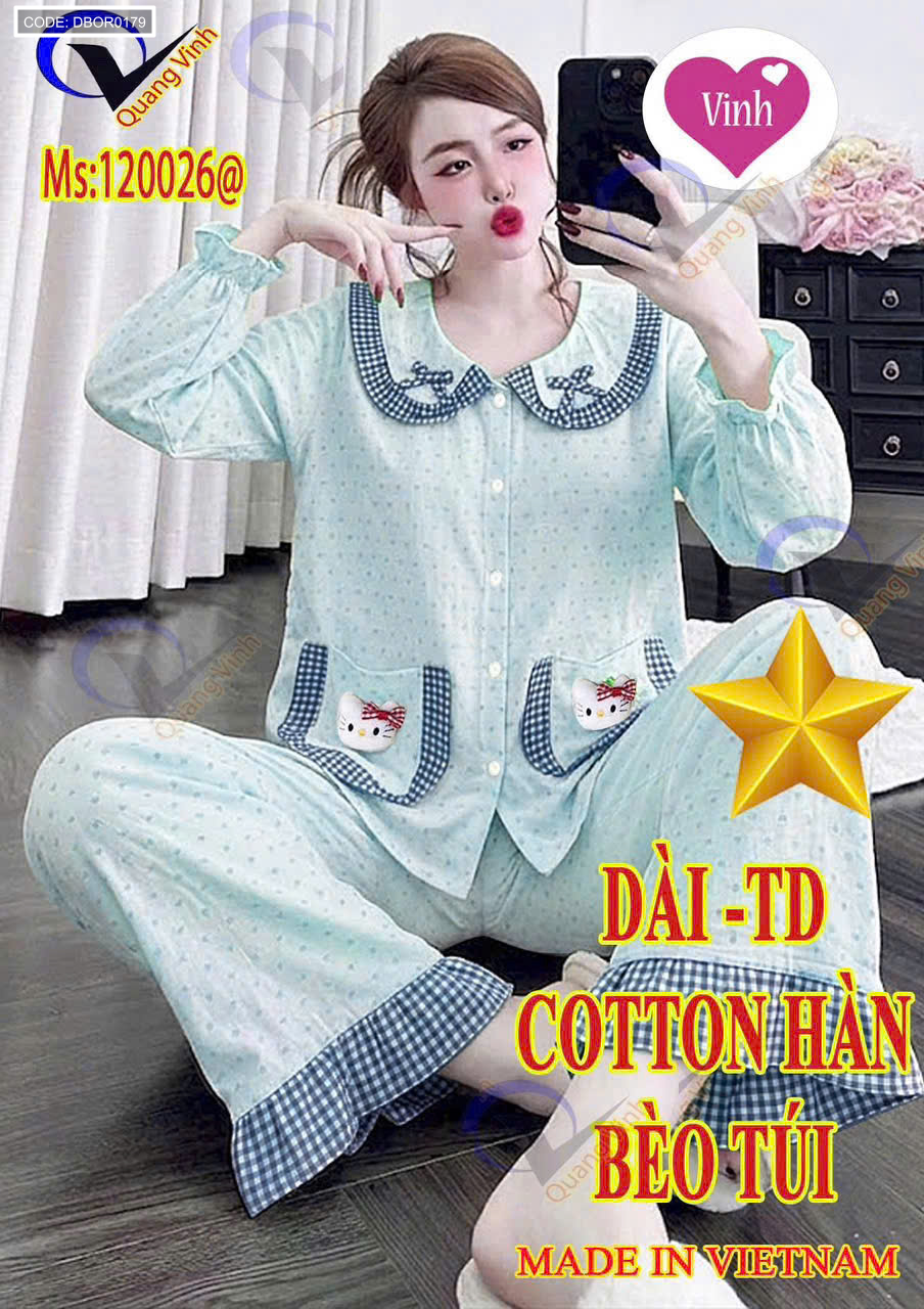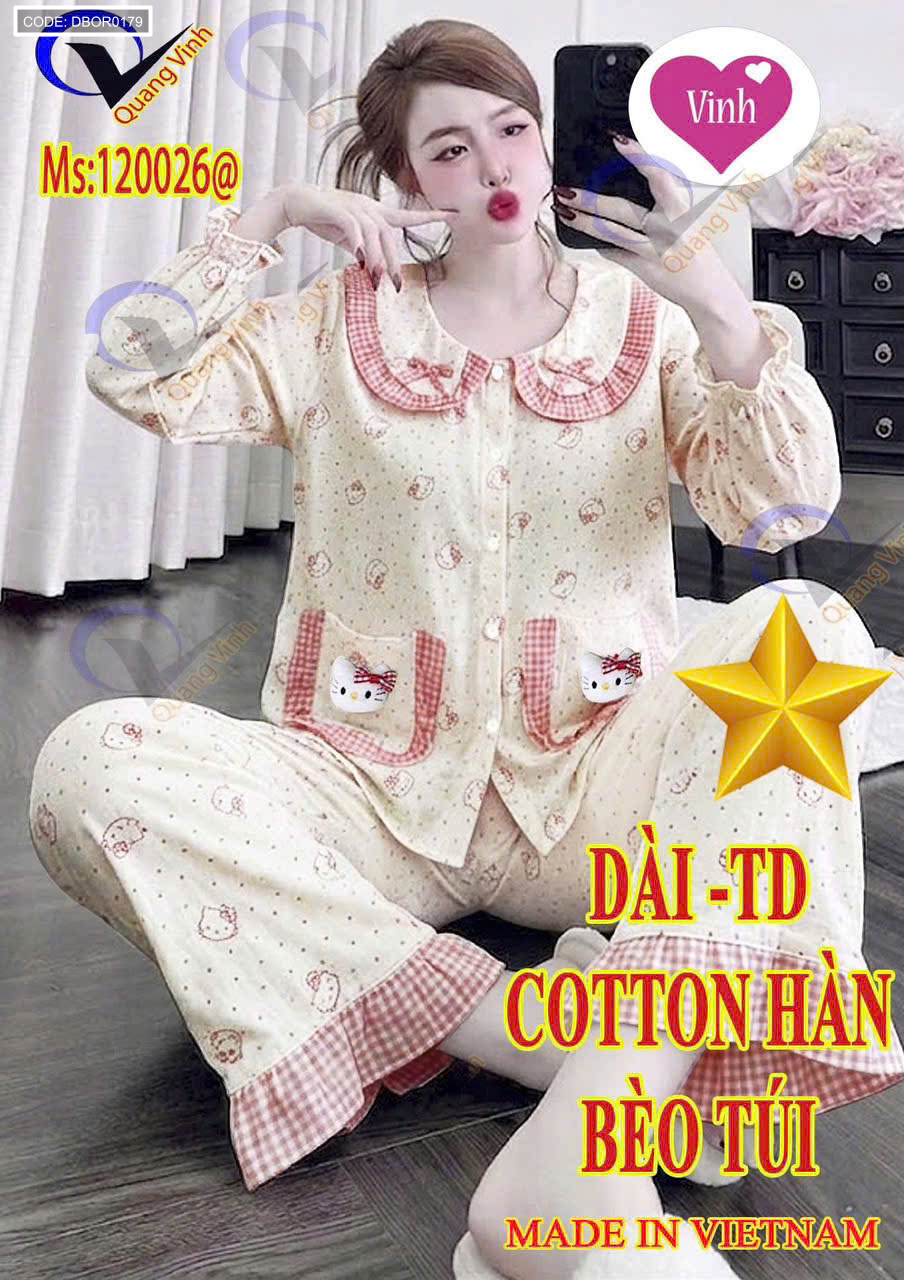 Shop sỉ đồ bộ nữ tay dài quần dài chất cotton hàn ko giãn QV-20026