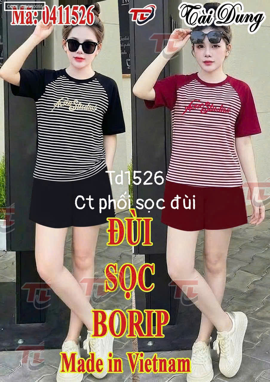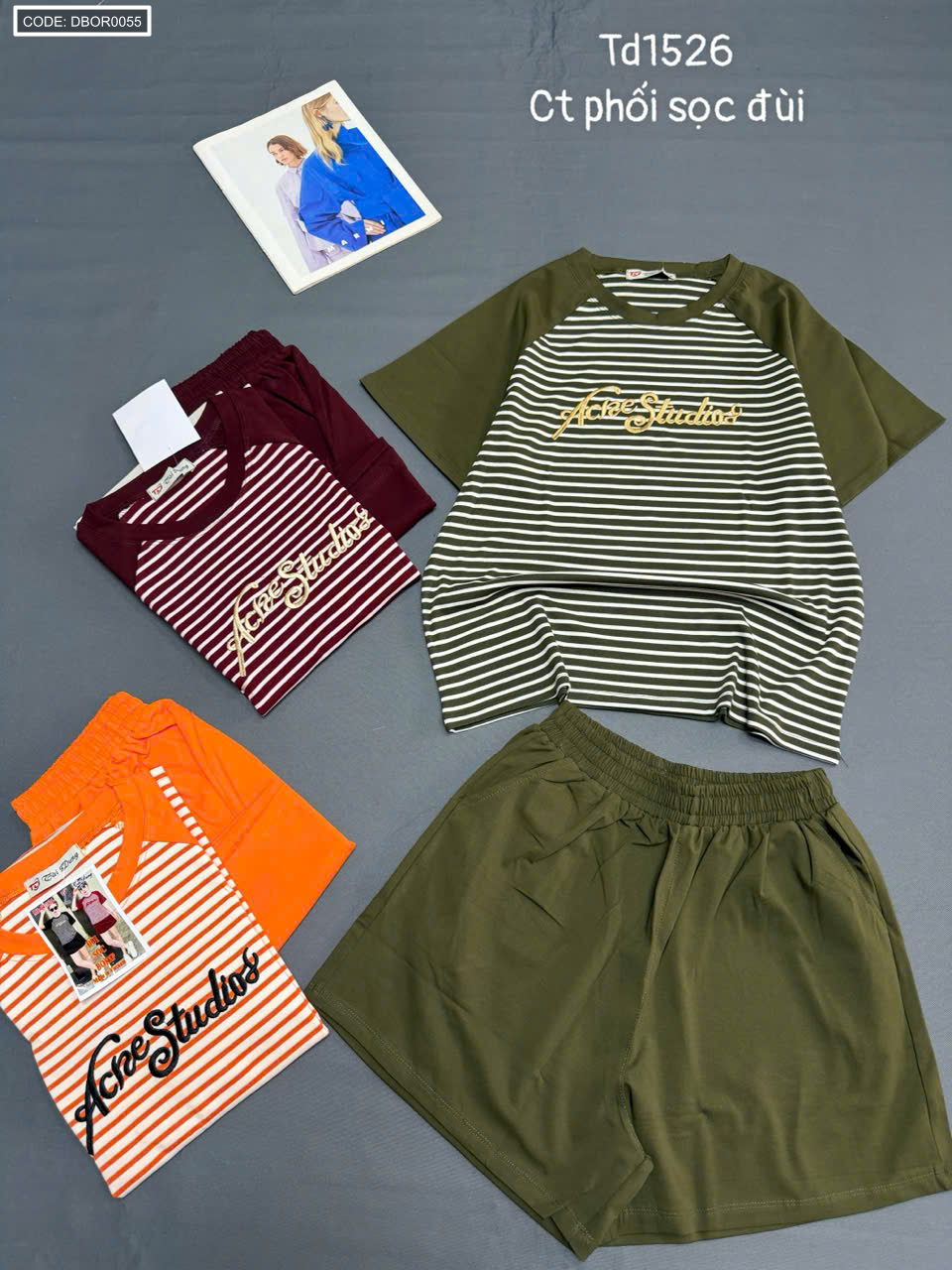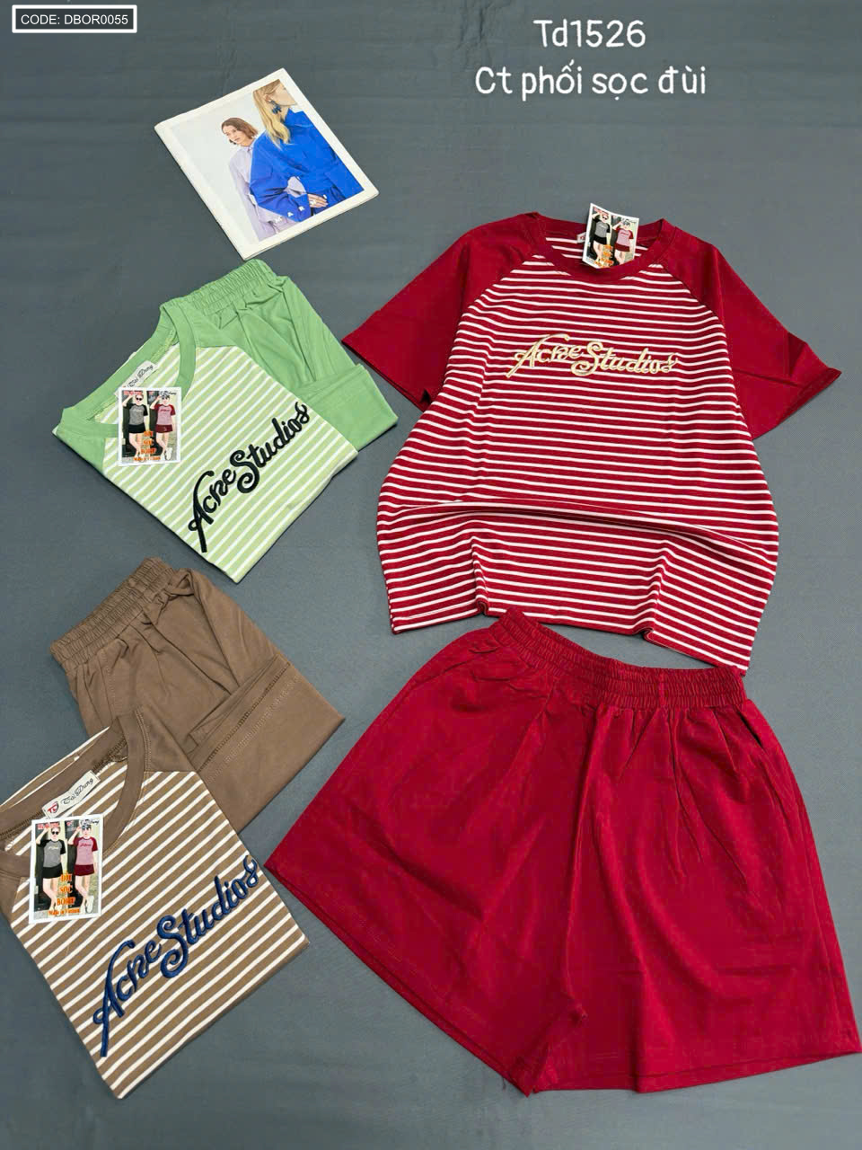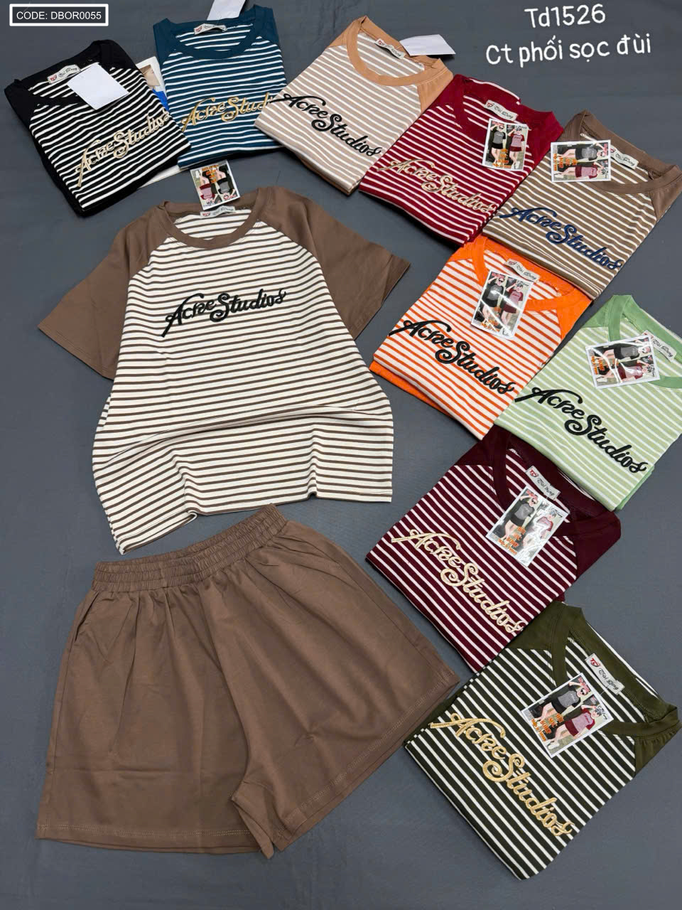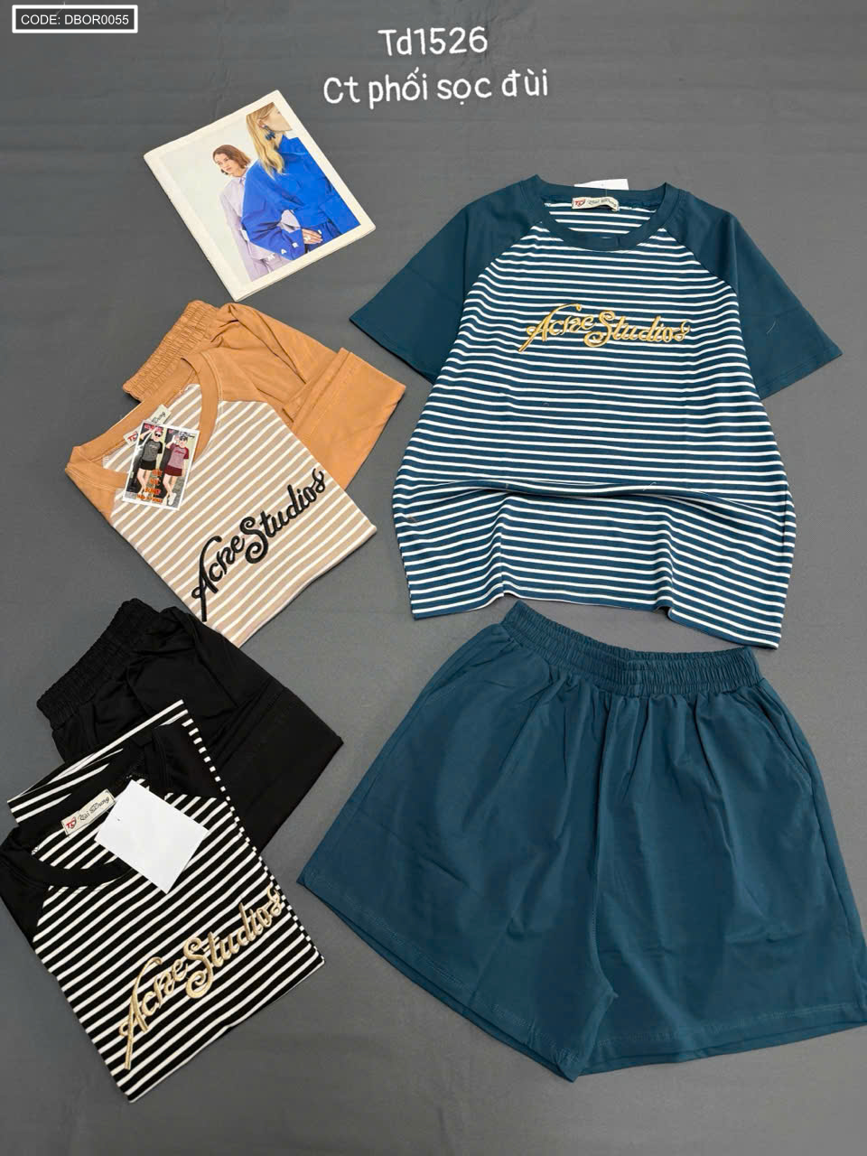 Shop sỉ đồ bộ nữ tay ngắn quần đùi phối sọc Td1526