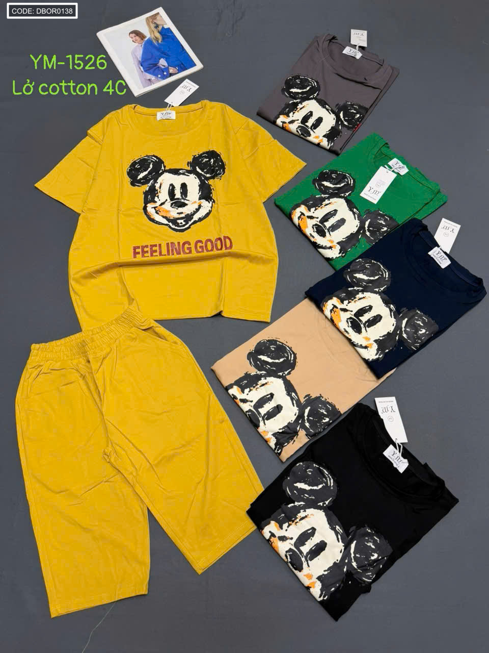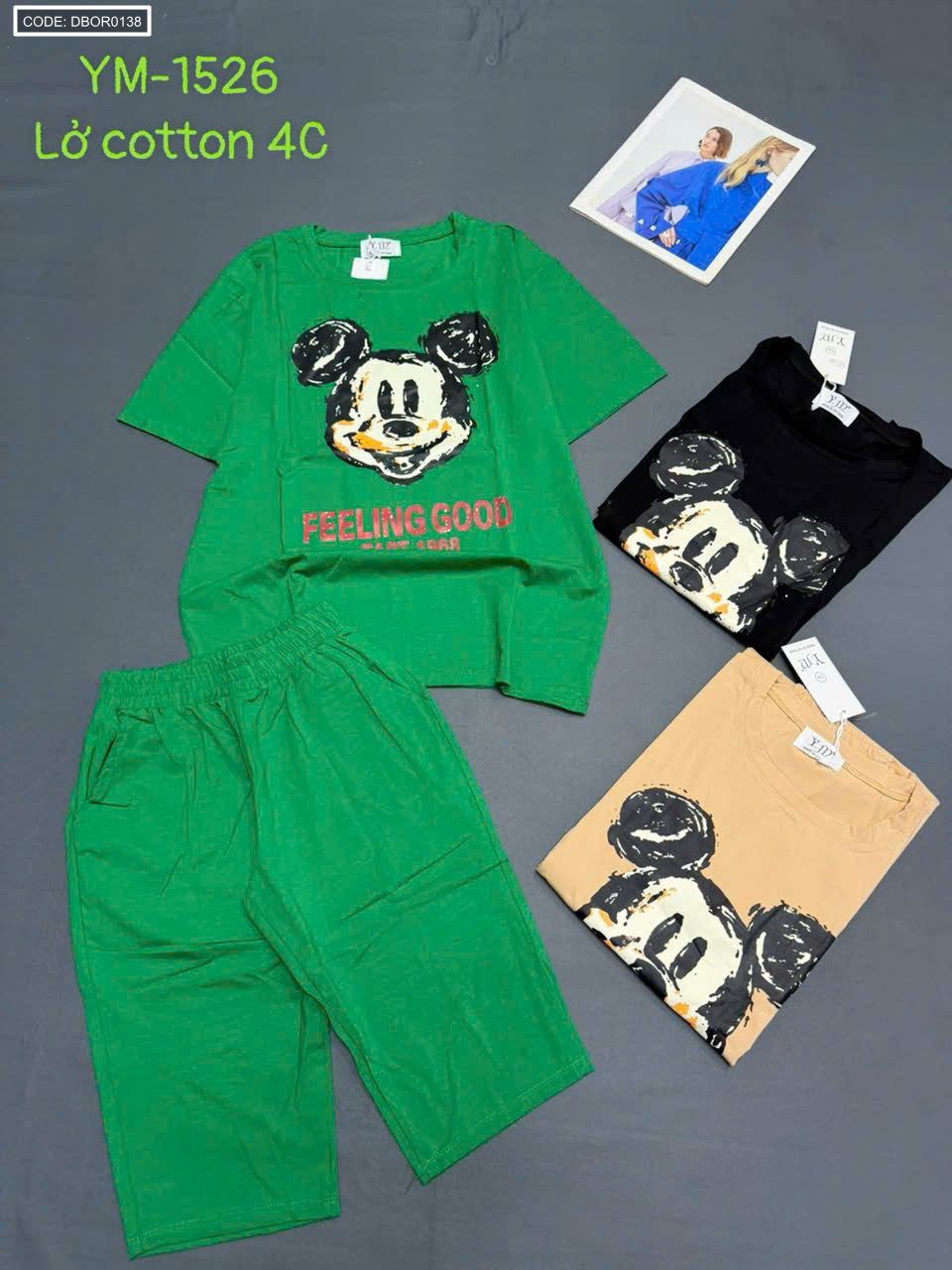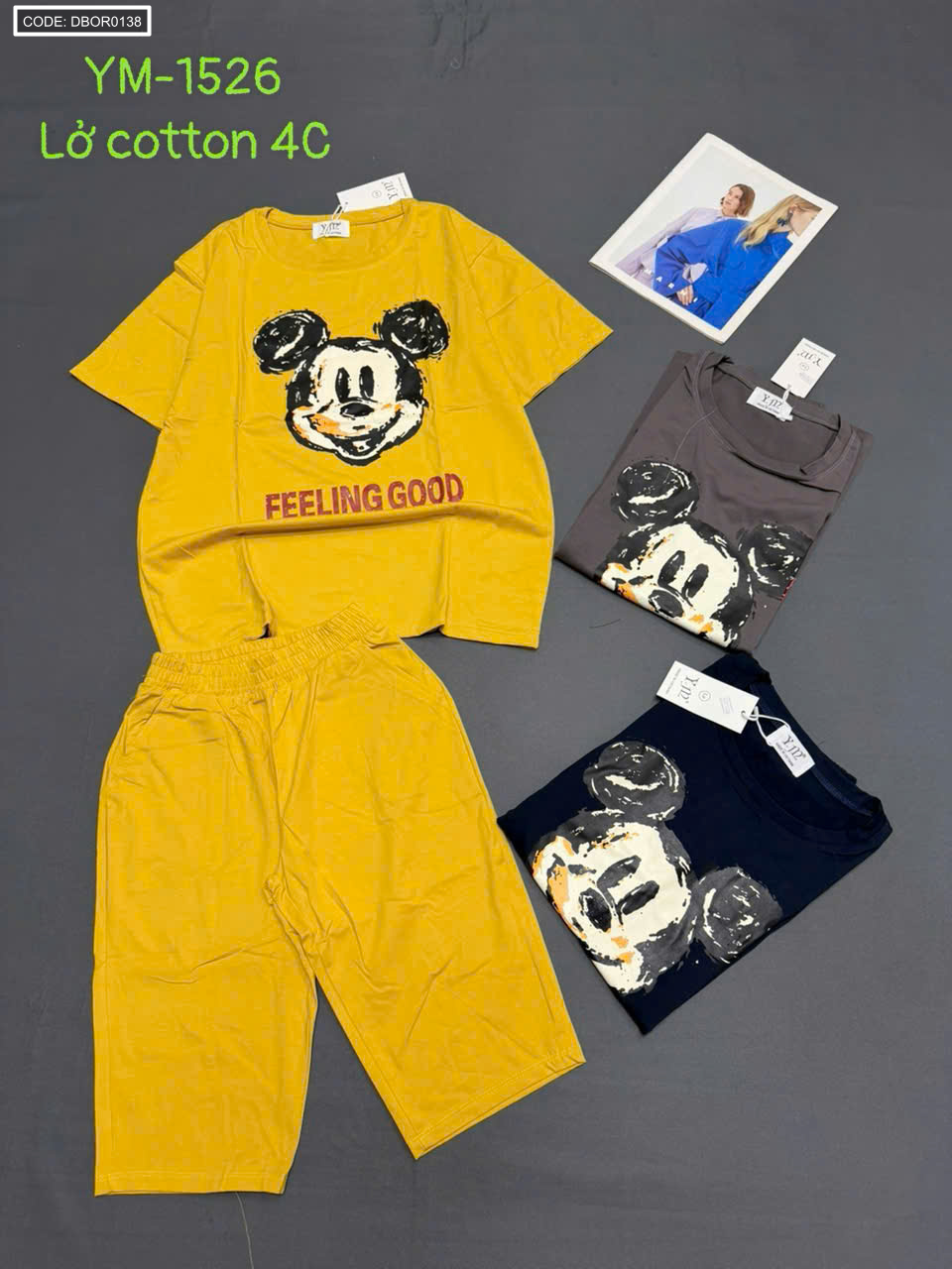Shop sỉ đồ bộ nữ tay ngắn quần lững in hình Mickey